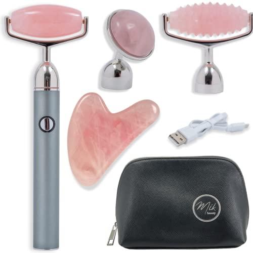 Rejuvenate your skin with the ancient Chinese art of Face Rolling and Gua Sha. This specialized massage technique, which has been used for centuries, uses genuine Rose Quartz to visibly firm, contour, and regenerate complexion. It works on the tissues of the face by improving circulation, stimulating lymphatic drainage, and releasing toxins. The vibrating rose quartz facial roller helps to reduce puffiness and enhance skin leaving it smoother, tighter, and more radiant. Great for all skin types! It addresses aging skin by smoothing wrinkles and bringing better color, oxygen, and nutrients to the skin. It addresses congested skin by enhancing detoxification and helping to rid the skin of impurities. It addresses inflammatory skin conditions by providing a gentle massage and a cooling sensation which draws out heat from the skin. Directions: Gently glide the Rose Quartz roller over clean skin daily for 5 minutes. Roller should be moved with the weight of the roller pressing on the skin. No additional pressure is needed. Can be used on clean face alone, or after applying skincare products, such as masks, serums and oils, to encourage deeper penetration. Cleaning: The Rose Quartz roller can be rinsed and wiped gently with a soft damp cloth, then dried with an absorbent cloth. Never wipe rose quartz with very hot water, soak in water, or expose to harsh chemicals or cleaning agents, as it could slowly erode and damage the natural stone.