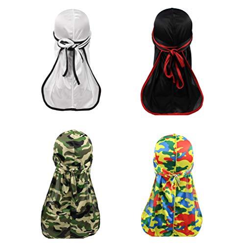 - DESIGN: Camouflage and Solid Satin Silky durags, 4 colors packed, 360 Waves,Extra Longer Tail,Wider Strap,Quadruple Stitching Seams