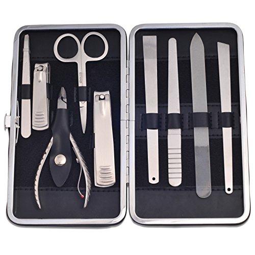 - STAY ORGANIZED WITH OUR STYLISH CARRYING CASE: It's frustrating to search through drawers or cabinets looking for the right manicure pedicure tools. No more digging around - all 9 pieces in this manicure pedicure set and grooming kit fit right into the quality carrying case. Whether you want an at home pedicure, nail tools to help do your own french manicure, or to maintain your fingernail health, you'll easily find everything organized in this great nail and foot care kit.