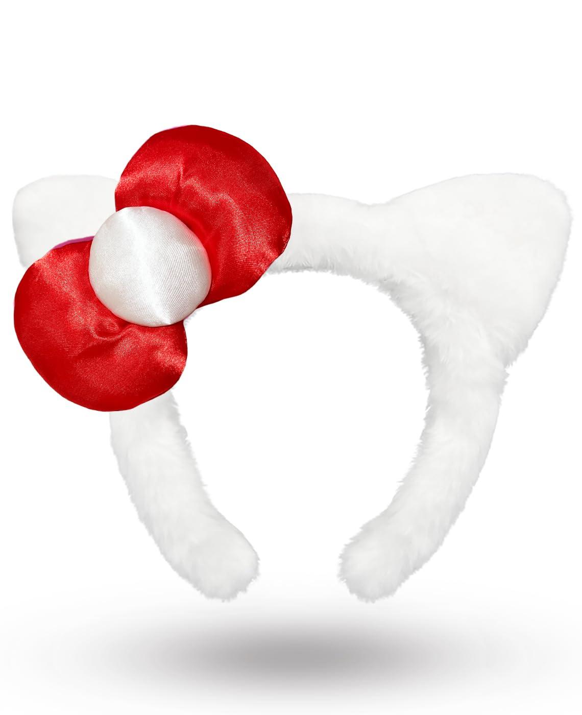- Cat Ears with Pink Bow Design This kitty headband adds cuteness and style to any outfit or occasion. Cat ears headband is perfect for fans or those who love cute white pink accessories.