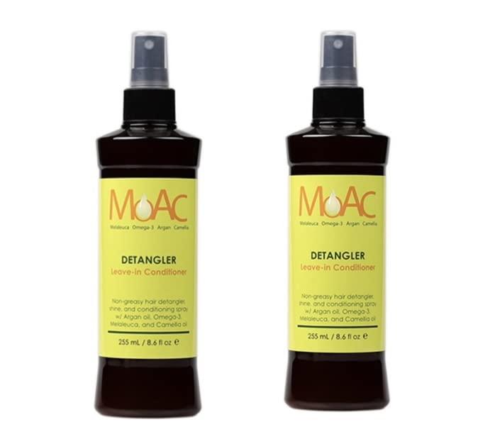 - Non-greasy leave-in conditioner, Detangler will leave hair feeling soft and shiny while MOA nourishes and restore last protein and oils.