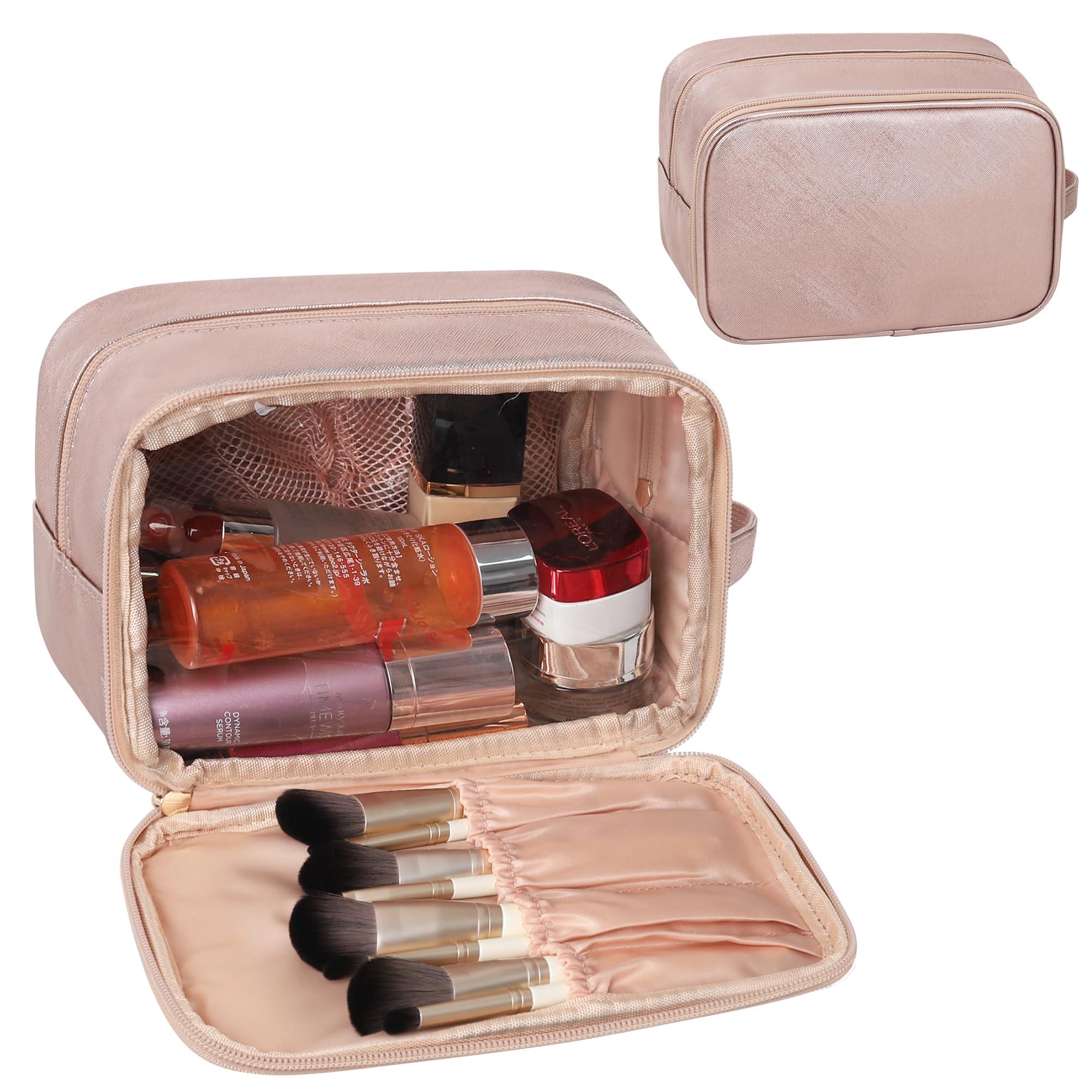 - Professional Design: Small makeup bag has a special brush storage location,very great for protective makeup brush to prevent damage. There are four makeup brush slots on the upper layer that offer you to carry daily makeup brushes.