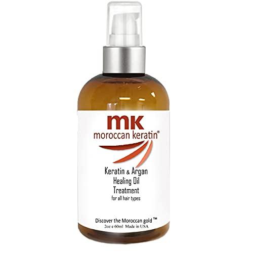 - Moroccan Keratin Argan & Keratin Hair Healing Oil Keratin Treatment is Nourishing Fortifying & Conditioning. Comes in a form of fast drying and absorbing oils, Containing Pure Moroccan Argan Oil, Botanicals and proprietary Hydrolyzed Keratin for Frizz-free, Soft and Smooth hair.