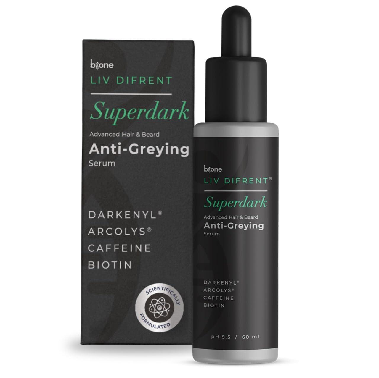 Superdark Advanced Hair & Beard Anti-greying Serum is a scientifically formulated solution to help you regain your natural hair and beard color. Unlike harsh chemical dyes, this serum takes a gentle approach to reverse premature greying.