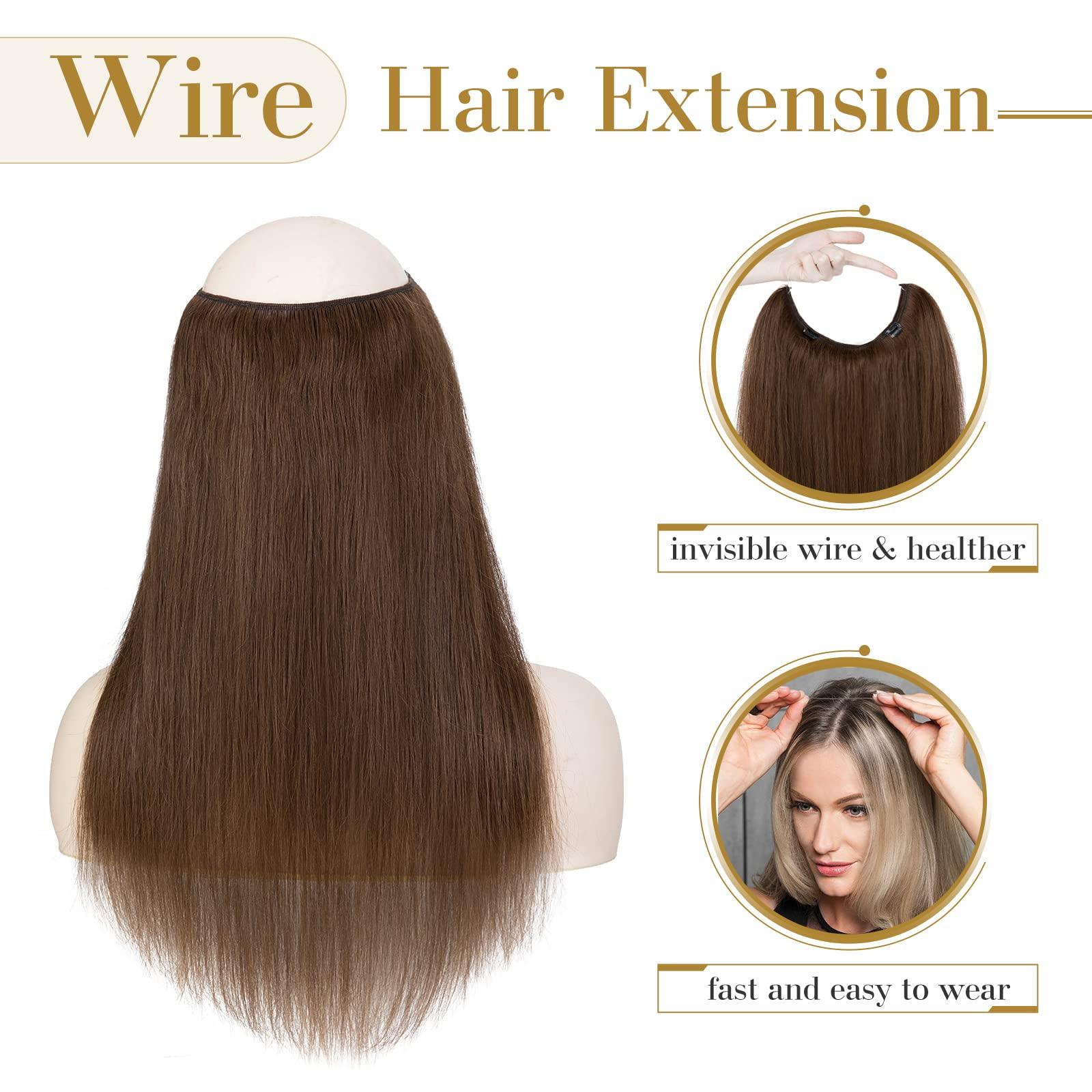Halo Hair Extensions Real Human Hair, MY-LADY Adjustable Halo Extensions Real Human Hair, 18 inch Medium Brown Women\'s Long Straight Hair Invisible Wire Hair Extensions