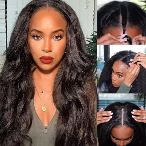 - Why v part Yaki Straight wigs:Glueless human hair wigs wear and go,0 skill needed. Its a lifesaver on busy days, gym days and unexpected meetings.