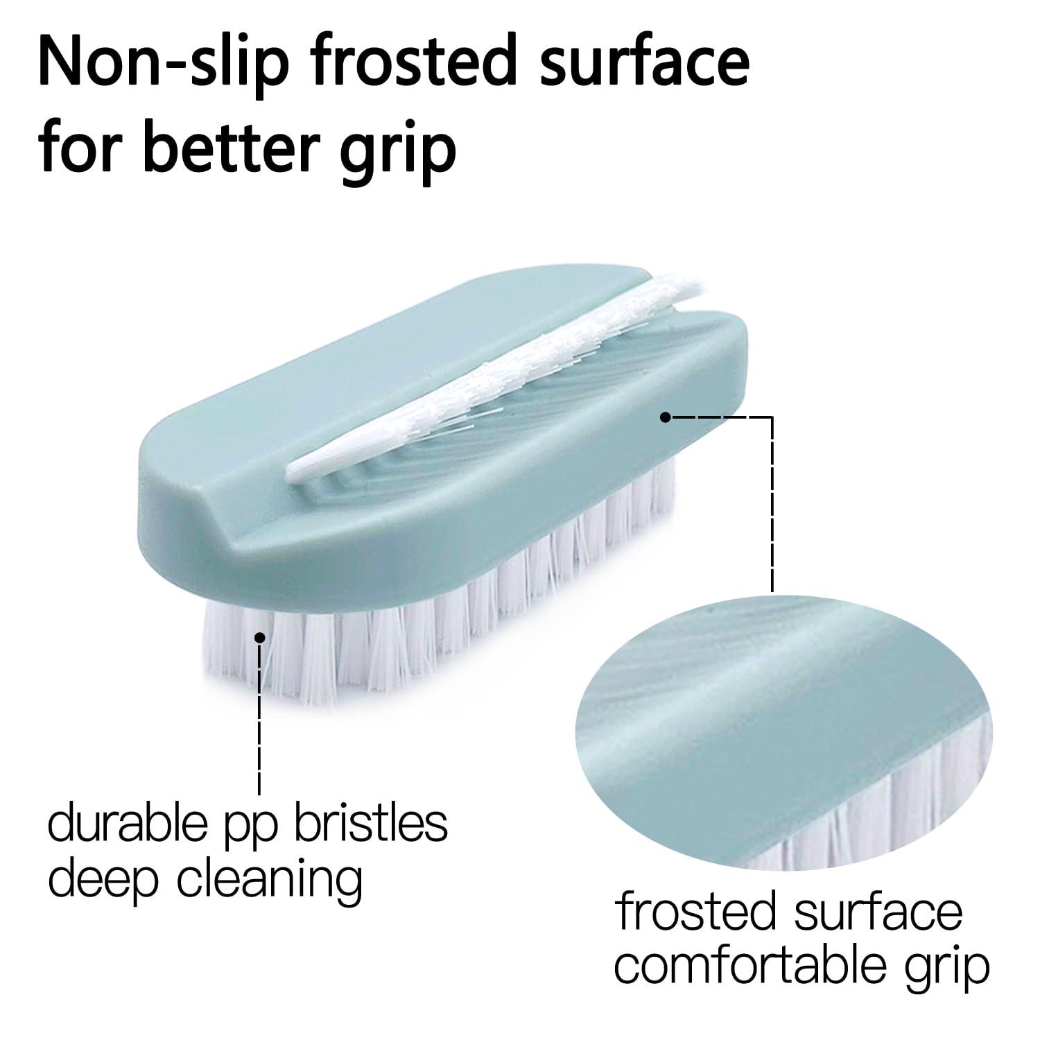 - 2 sides nail brush for cleaning fingernails and under nails: One side the bristles are longer and less stiff to clean hands fingers and fingernails; and the other side bristles are shorter and stiffer to remove dirt under nails