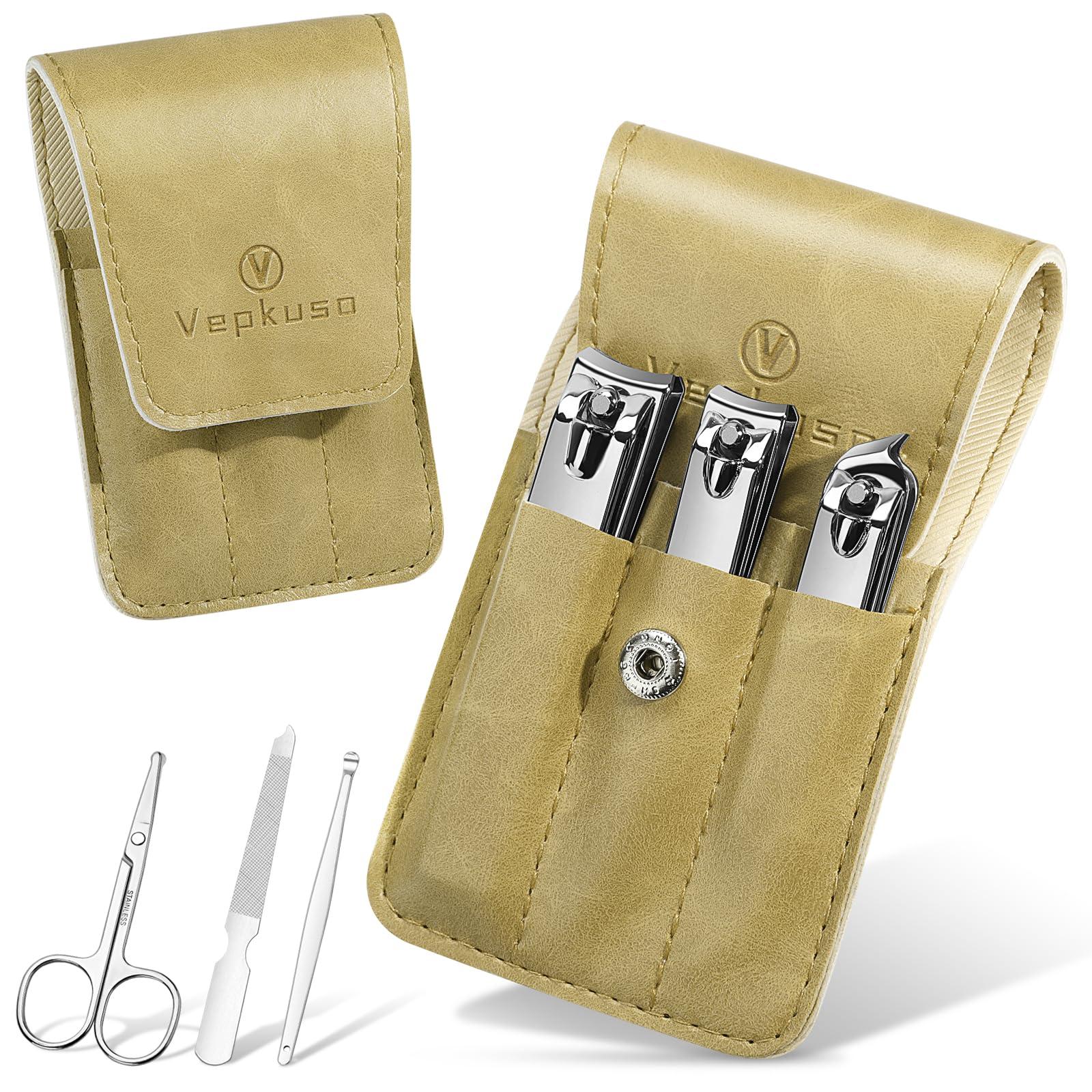 - VEPKUSO NAIL CLIPPERS SET: the nail clippers set comes with one large nail clippers for toenail, one medium nail clippers for fingernail, and one slant edge ingrown nail clippers for those tricky corners and tougher cuts. Everything comes in a nice-looking leather pouch suitable for travel.