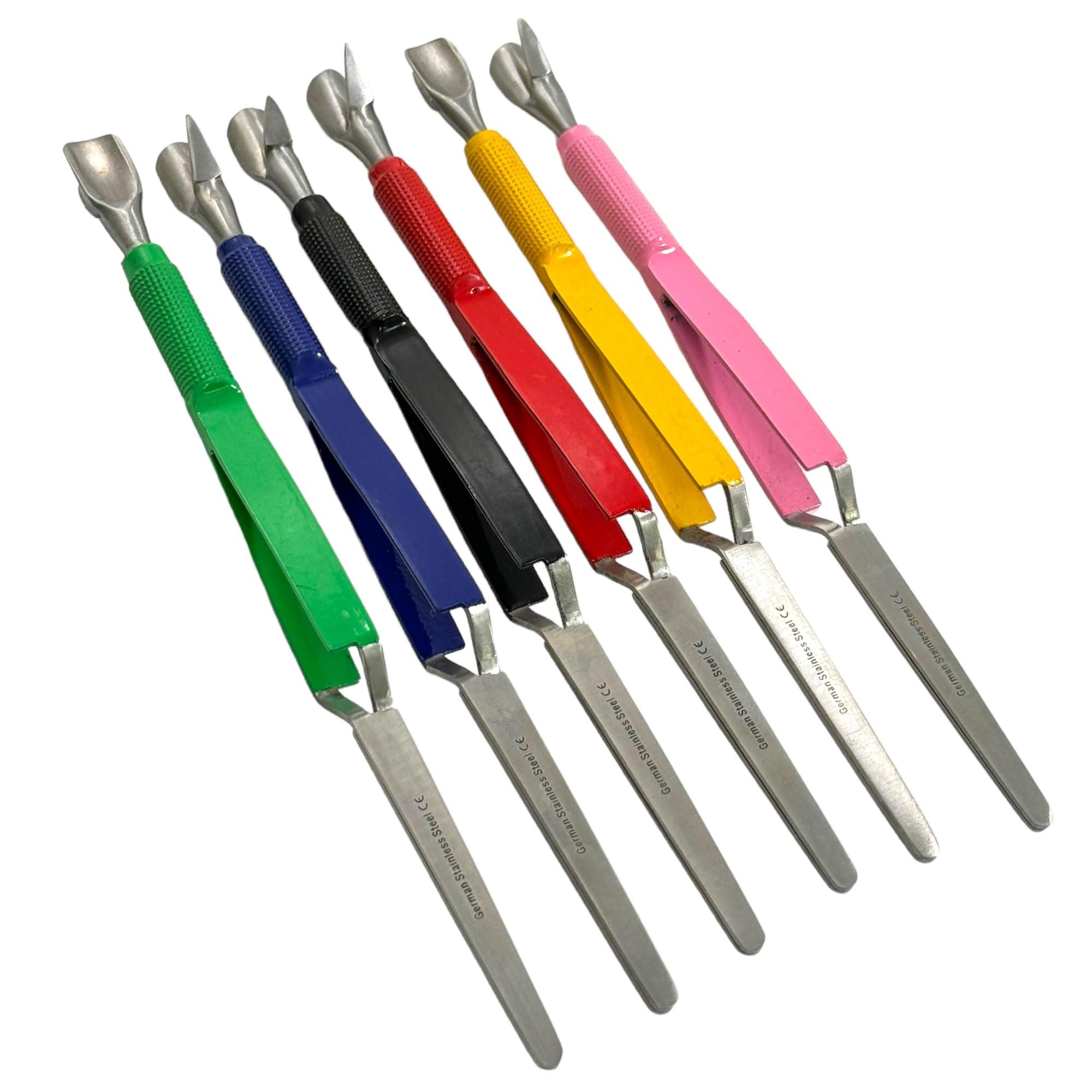 - Set of 6 - Acrylic Nail Pinching Tool Cutticle Pusher Made of German Stainless Steel (Blue, Black, Green, Pink, Red, Yellow)