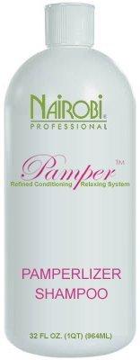 Nairobi Pamperlizer Shampoo This rich conditioning shampoo is designed to neutralize hair's alkalinity and helps restore a normal pH level. Contains highly buffered balancing agents, plus a chelating agent and conditioners to effectively remove oily residue and mineral deposits. Releases a pampering botanical calming fragrance blend for a pleasant and alluring wellness experience.