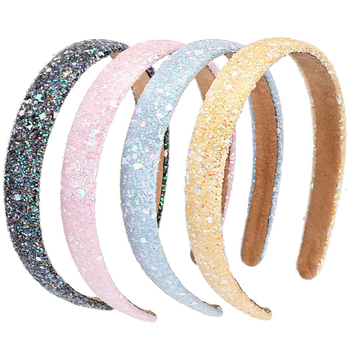 - Package includes: 4 colorful sequin headbands, colors: Black, Yellow, Pink, Blue.