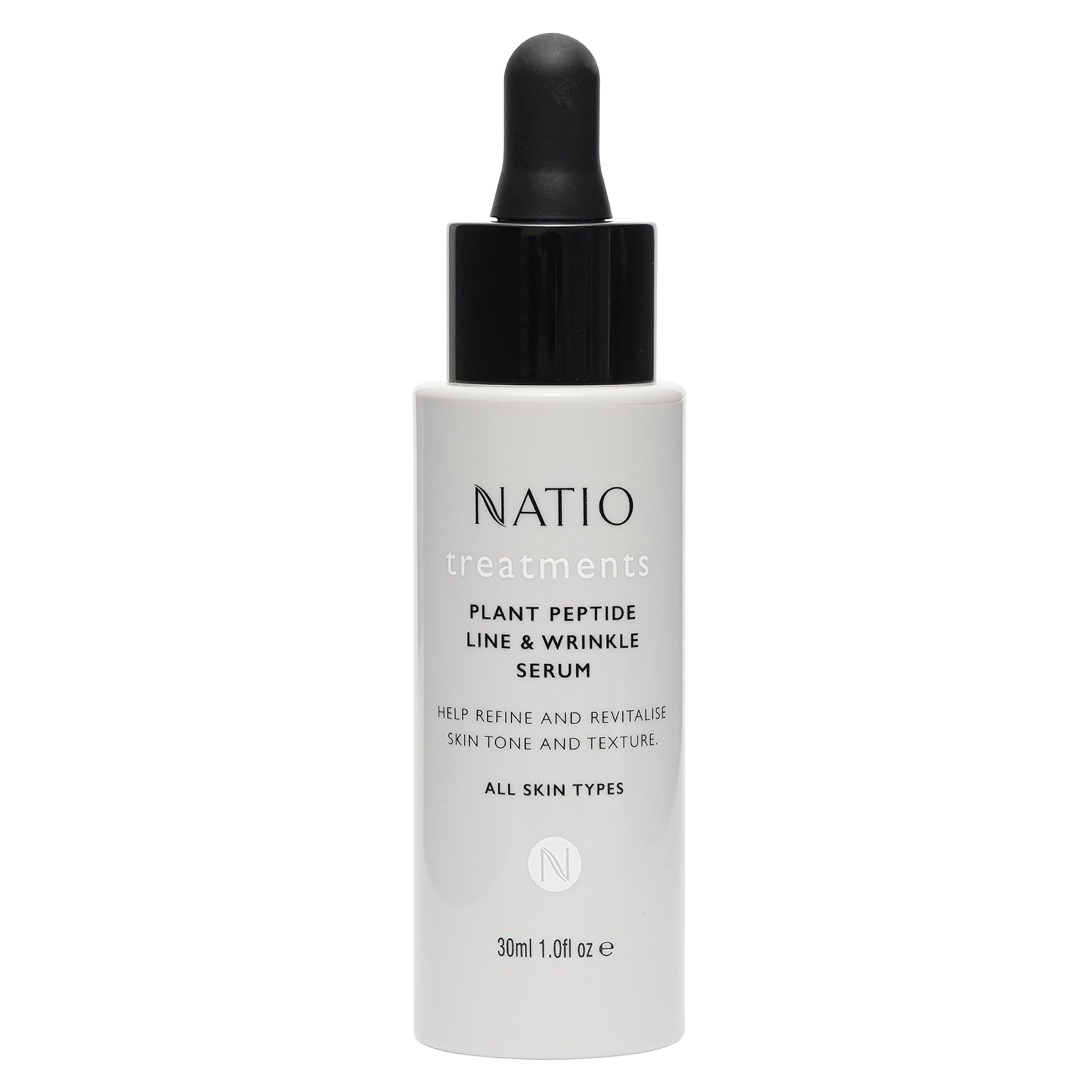 Discover the power of Natio's Plant Peptide Line and Wrinkle Serum, a rejuvenating face serum that targets aging signs to reveal a more youthful complexion. This blends plant peptides and ceramides in a potent formula that restores and replenishes your skin. Our hydrating serum is a daily face serum that revitalizes skin texture and enhances its natural glow. As a leading wrinkle cream for face, our serum aids in smoothing out fine lines and wrinkles, providing a firming and lifting effect to the skin. It's a perfect addition to your face care routine, no matter your skin type. This serum for face anti aging offers calming and nourishing benefits to your skin. Use it morning and evening to help your skin regain its firm, smooth, and youthful appearance. This serum for face is a potent blend of plant peptides and ceramides that work together to firm the skin, improve the appearance of fine lines, and nourish your skin. Experience the benefits of our face serums for anti aging and see the difference it makes. With Natio's Plant Peptide Line and Wrinkle Serum, your skin's health and beauty are in good hands.