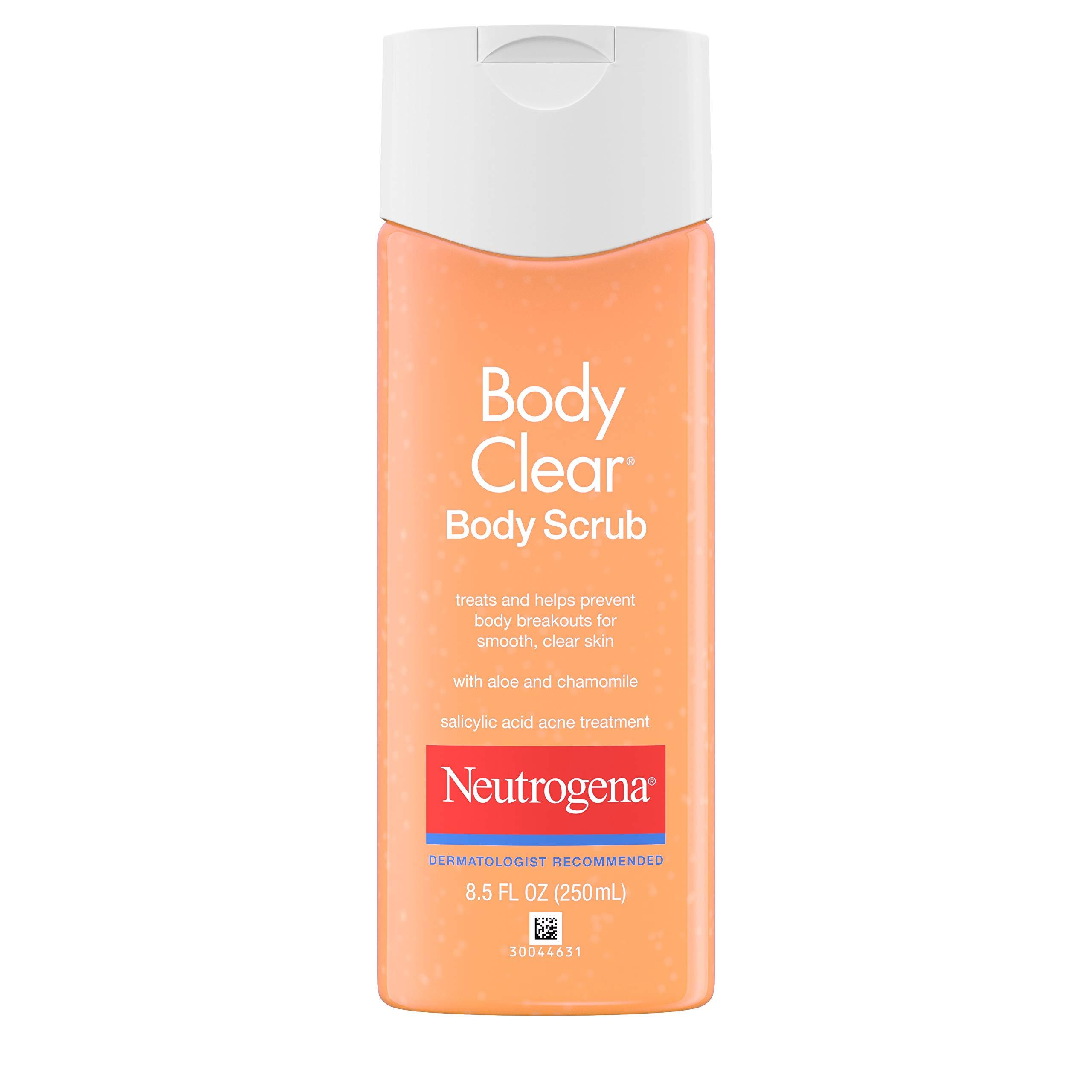 - 8.5-fluid ounce bottle of Neutrogena Body Clear Oil-Free Acne Body Scrub with 2% salicylic acid acne medicine to help treat body breakouts