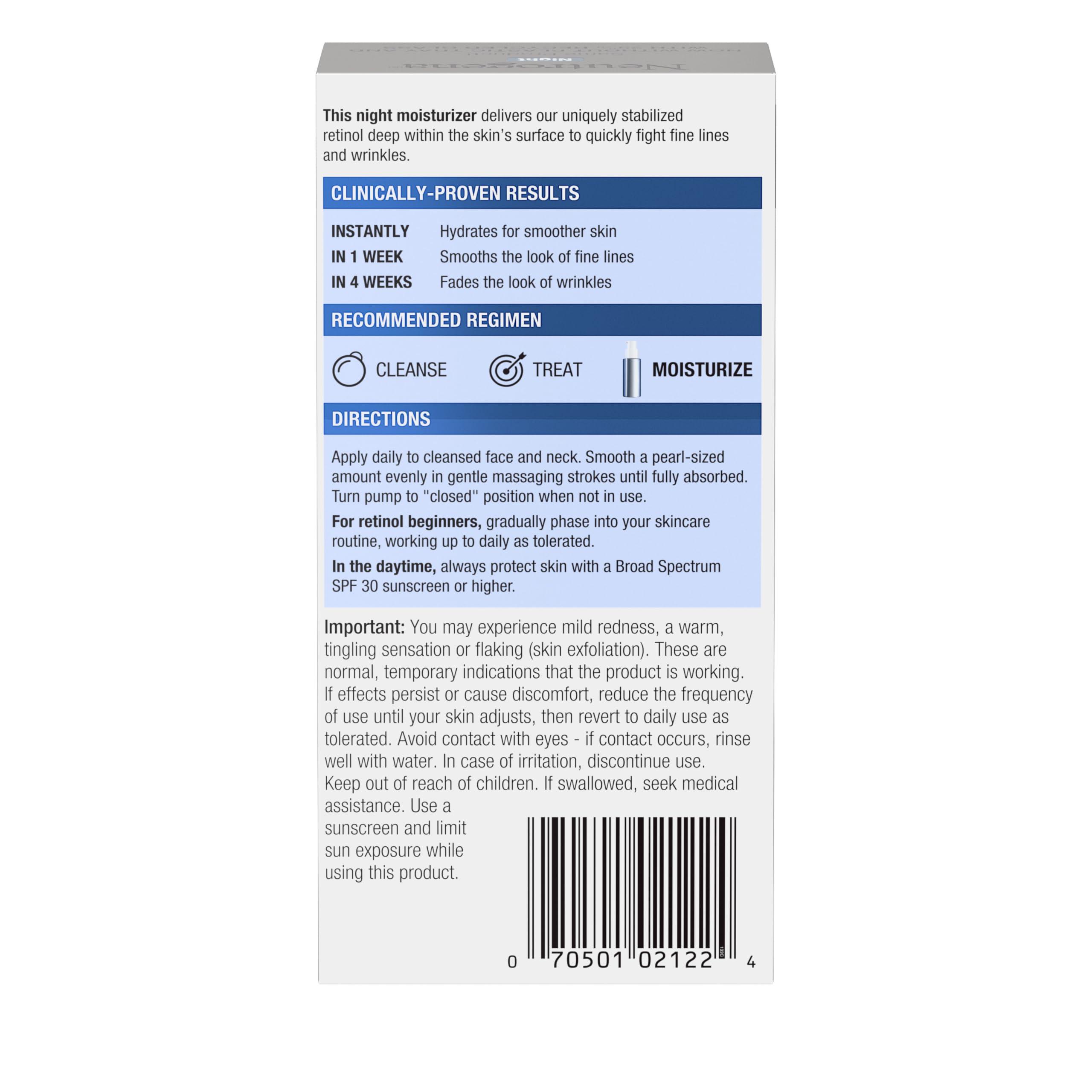 - Moisturizing Cream: One 1 fl oz bottle of Neutrogena Rapid Wrinkle Repair Retinol Night Face Moisturizer Cream with hyaluronic acid crafted to improve the look of fine lines and wrinkles