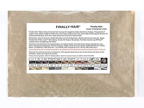 - Our natural, Vegan, Cruelty-Free Hair Building Fibers are made under strict quality standards in our ISO 9001 facility. We responsibly and sustainably source only the finest ingredients. No ammonium chloride or other ingredients that may be unhealthy. The fibers won't clog your pores. The fibers are magnetized for optimum styling. Please use Finally Hair strong fiber lock spray after you apply the fibers - sold separately. The spray will lock the fibers in place until you shampoo them out.