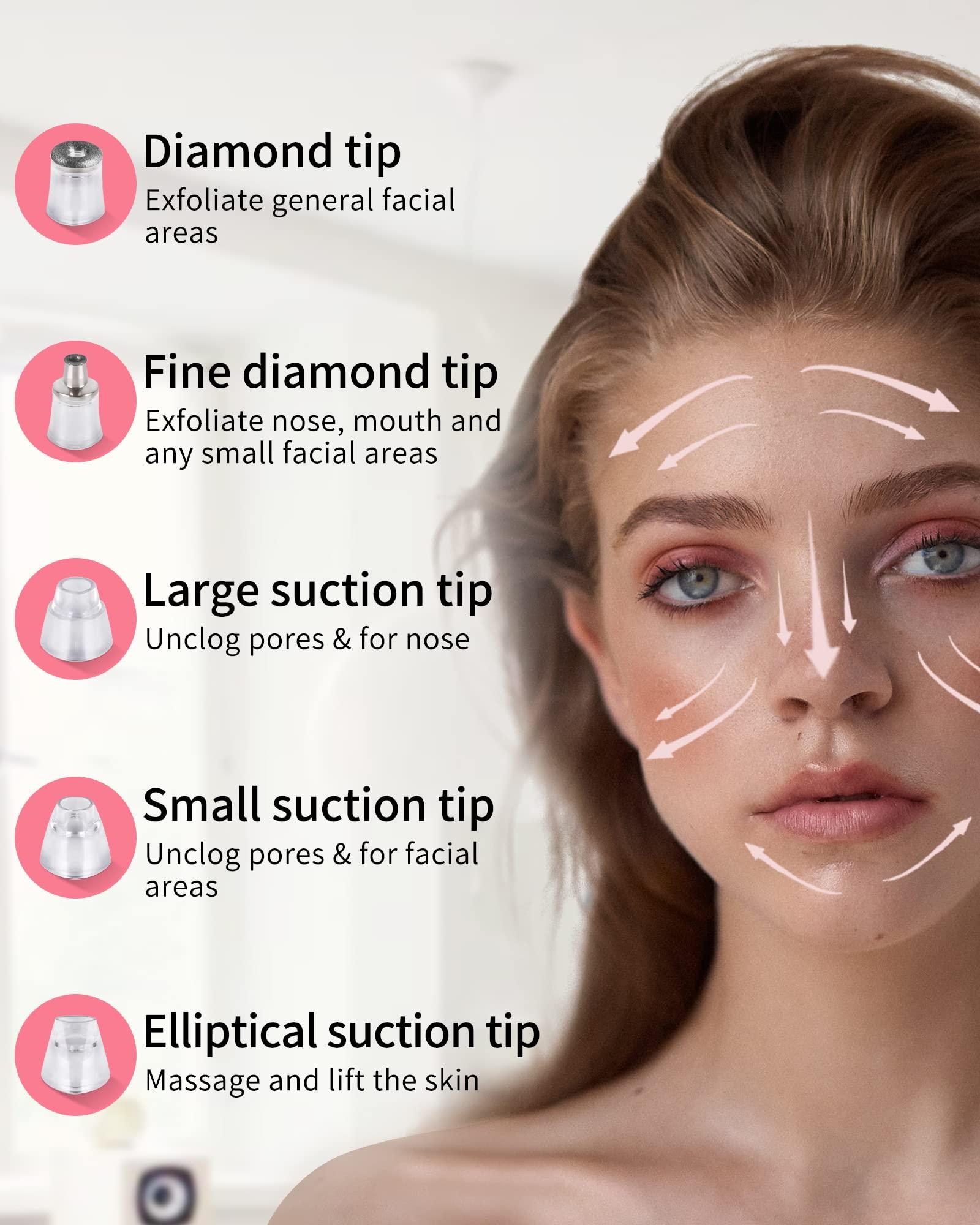 - Microdermabrasion Machine: Incorporates genuine natural diamond chips to polish the skin; removes dead cells, reduces roughness, wrinkles, blackheads, and unclogs pores for an even skin tone