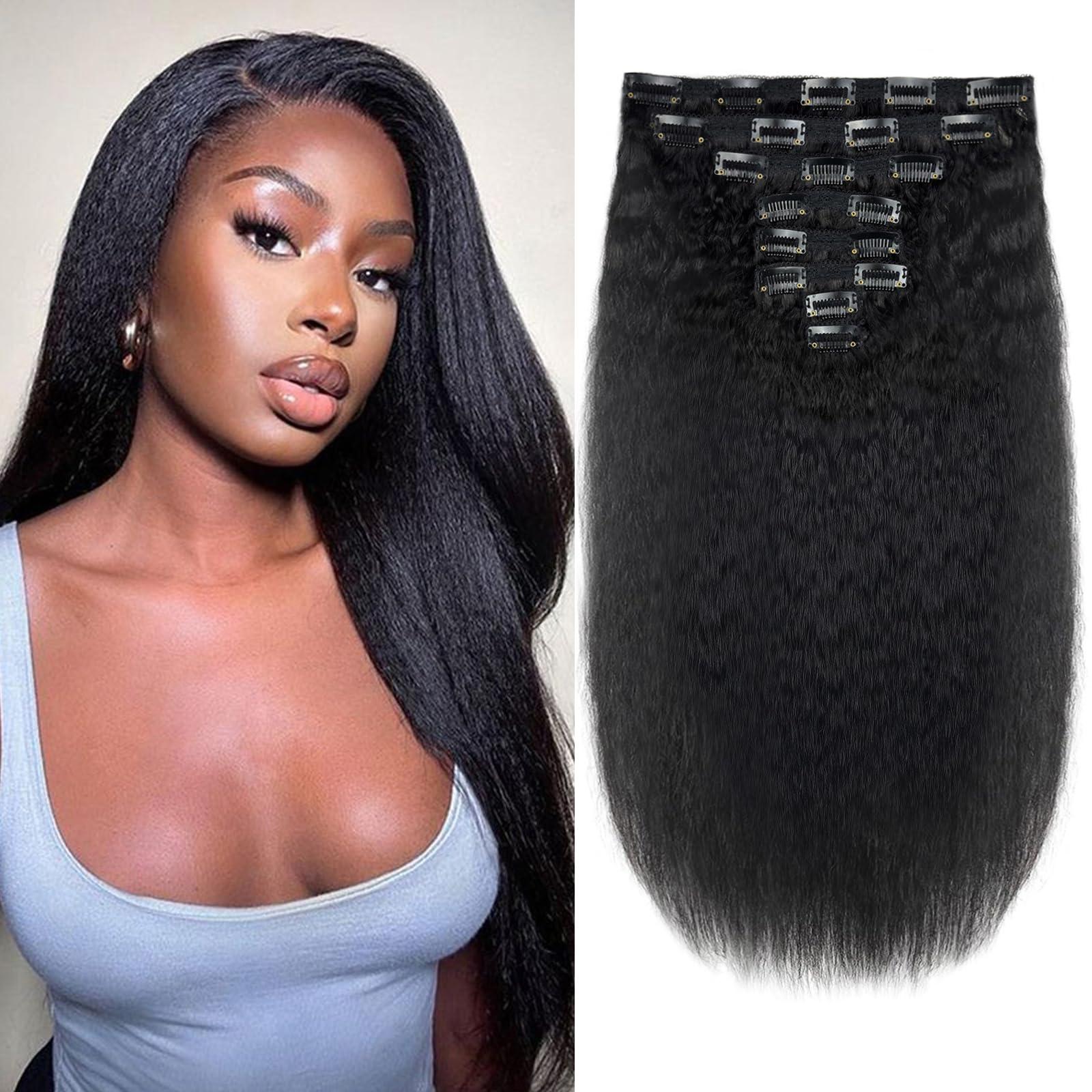 - Natural Texture: Our Kinky Straight Clip Ins Hair Has A Very Natural Hair Texture That Seamlessly Blends With Your Own Hair, Adding Length And Volume, Also Matching Your Natural Hair Perfectly.