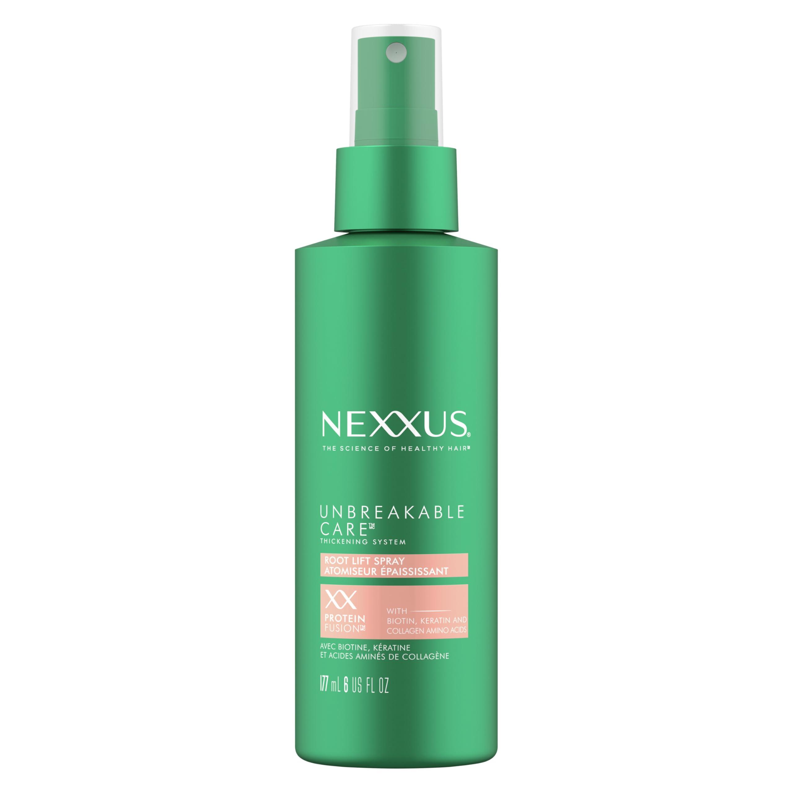 Experience the Unbreakable Care Root Lift Spray by Nexxus. This powerful formula of root thickening spray is your secret weapon for achieving voluminous, full-bodied hair that defies gravity. Powered by cutting-edge science, our root lift spray features an exclusive strand-expanding technology that thickens each individual strand from root to tip, creating lasting volume and bounce that lasts all day. Say goodbye to flat, dull hair and hello to hair that grabs attention with its luxurious thickness and vitality. Formulated with our signature ProteinFusion blend enriched with biotin, keratin, and collagen amino acids, this spray strengthens and protects your hair from within, ensuring it stays healthy and resilient against daily styling and environmental stress. How to use: It's simple to apply. Section damp hair and spray directly onto the scalp and throughout the hair for overall fullness. Gently massage into the scalp and style as usual. We recommend using this root lift spray in combination with our Unbreakable Care shampoo and conditioner for even better results. Trust Nexxus, where salon expertise meets scientific innovation. Our Unbreakable Care Collection is designed to help retain hair by reducing breakage while maximizing fullness, giving you the confidence to enjoy your thick, beautiful hair every day. Elevate your haircare routine with Nexxus Unbreakable Care Spray and unleash the full potential of your hair.