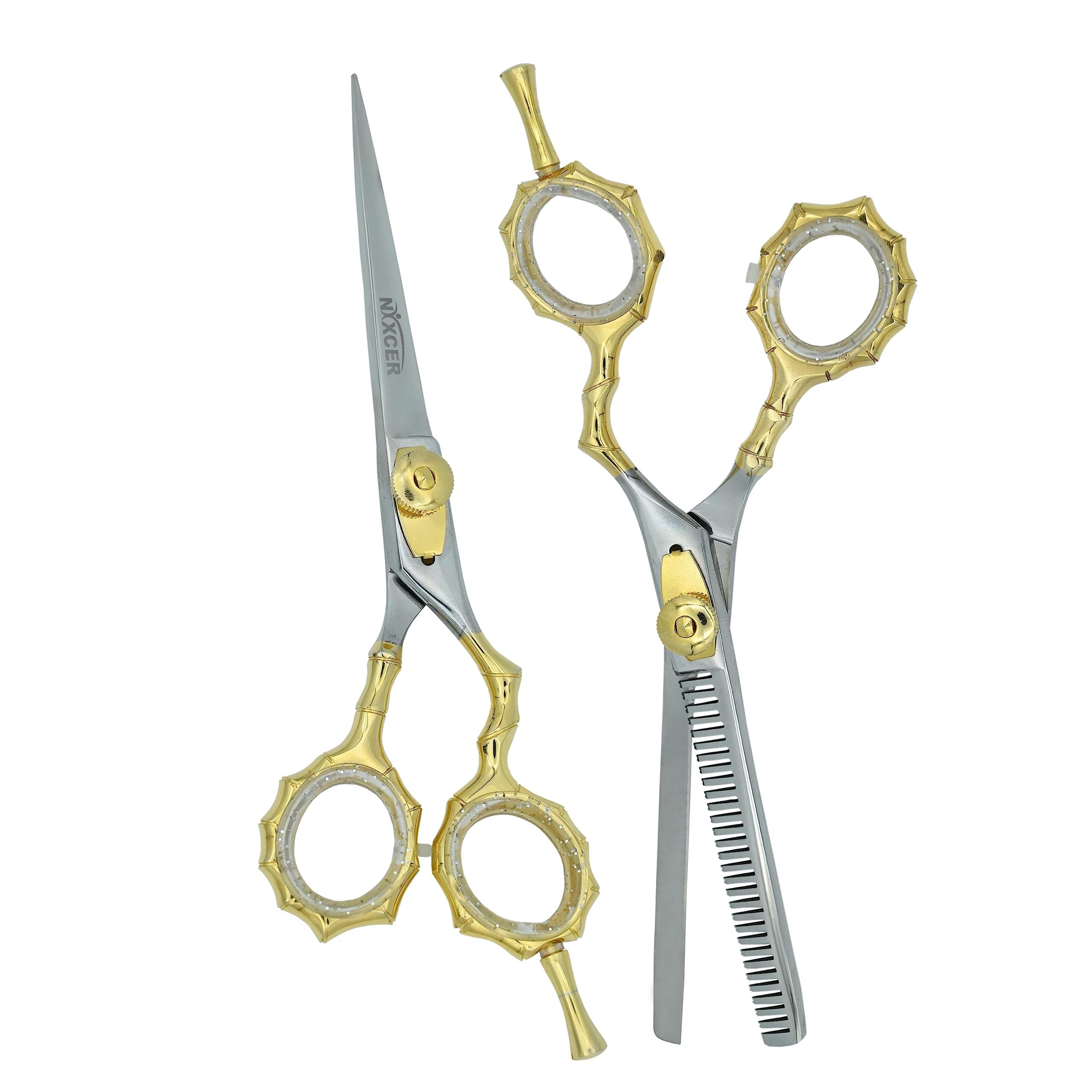 Achieve professional-quality haircuts and styling with the Nixcer Hair Cutting & Thinning/Texturizing Shears Set, crafted with precision from high-quality Japanese stainless steel. Designed for both salon professionals and home users, this set includes essential tools for precise hair cutting and thinning. Made from Japanese stainless steel, known for its exceptional durability and corrosion resistance, these shears are built to last. The 6.5" length provides optimal control and maneuverability, allowing you to create clean, precise cuts with the included hair cutting shears. The razor-sharp edges ensure flawless results, while the texturizing shears are designed specifically for thinning and adding texture to the hair. The ergonomic design of these shears ensures comfort during extended use, reducing strain and fatigue. The adjustable tension screws allow you to customize the shears to your preferred level of tension, providing a personalized cutting experience. Whether you're trimming split ends, creating layered looks, or thinning out dense hair, these shears offer exceptional performance. Experience the convenience of professional-grade hair cutting and thinning with the Nixcer Hair Cutting & Thinning/Texturizing Shears Set. Elevate your hairstyling game with these premium shears made from Japanese stainless steel, and achieve remarkable haircuts and textured styles in the comfort of your own home or salon. The inclusion of thinning shears in this set ensures precise thinning and texturizing, giving you the tools you need for versatile and professional-looking results.