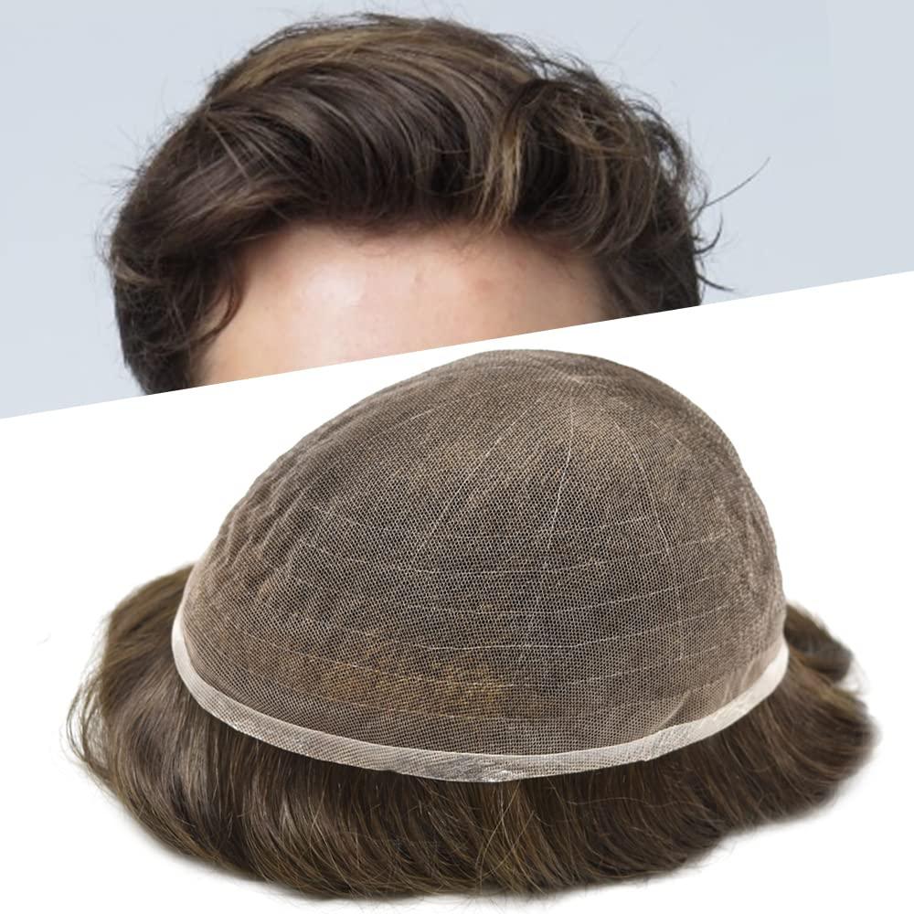 - Natural Hairline: Soft full Swiss lace mesh bottom design toupee for men, breathable and comfortable mens toupee.single and light bleached knots for the French lace front. The hairline looks natural due to bleached knots and won't be recognisable that its a hairpiece .looks more natural just as the hair seems growing from your scalp.