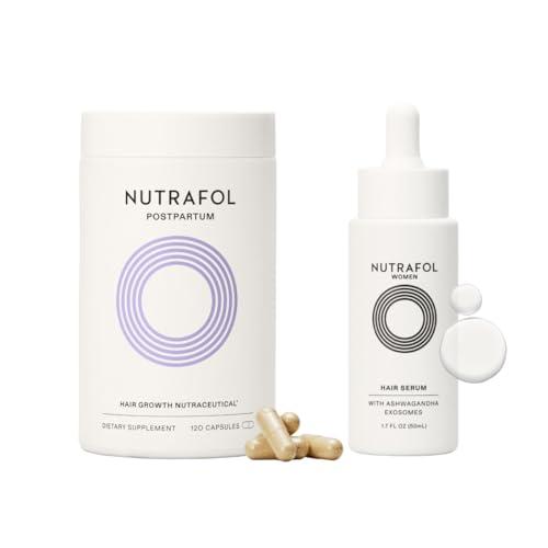 - HAIR GROWTH SUPPLEMENT AND SCALP SERUM: One (1) bottle of Nutrafol Postpartum Hair Growth Supplements for women after birth and one (1) 1.7 fl oz bottle of Nutrafol Hair Serum to support thinning hair
