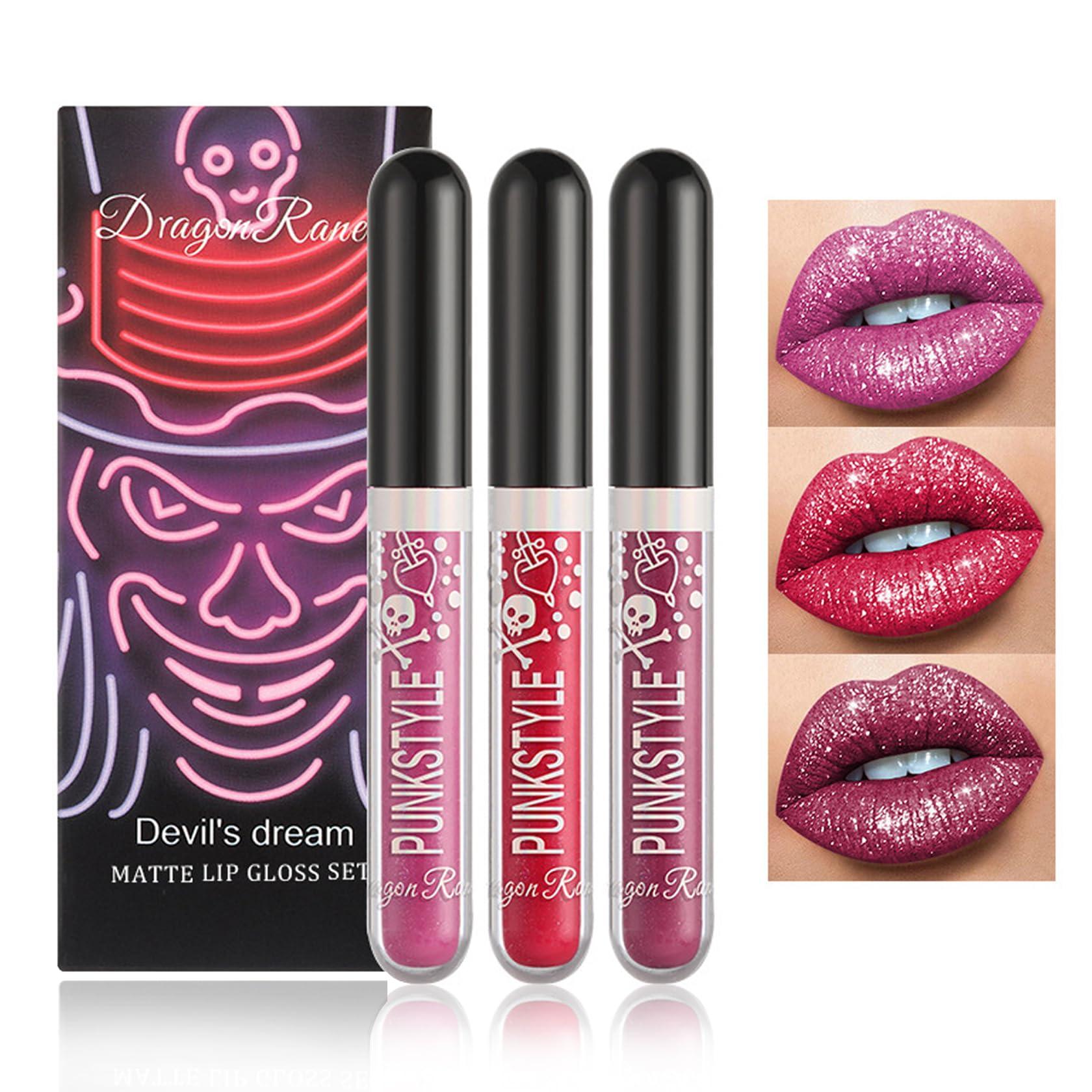 NVLEPTAP NVLEPTAP 3PCS Liquid Glitter Lipstick Glitter Lip Gloss Set,Diamond Shimmer Matte Lipstick Set Long Lasting High Pigment Glitter Lip Stick Kit Lip Gloss Set Halloween Makeup Gift - Set C