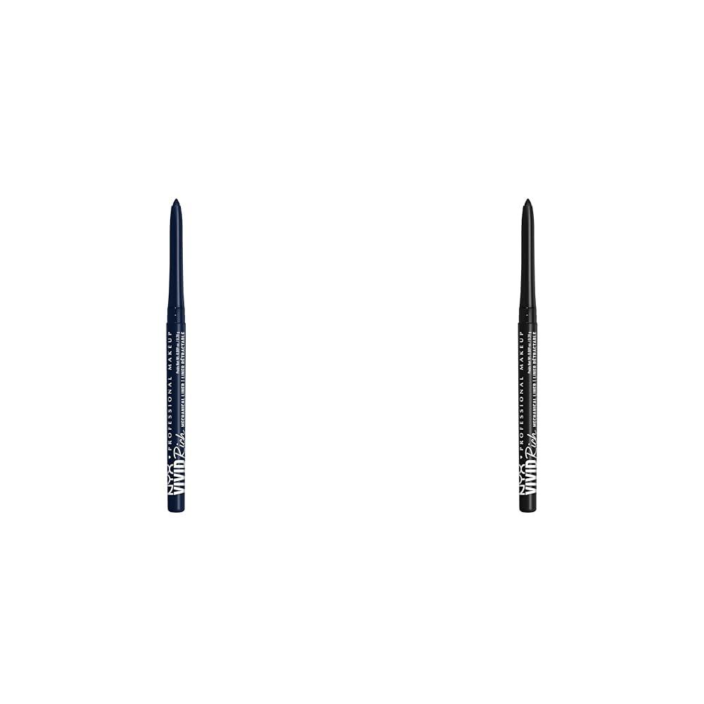 This eye makeup bundle from NYX Professional Makeup includes two richly-pigmented mechanical eye pencils for creating vivid eyeliner looks. The first component is the Sapphire Bling pencil in a deep blue shade. The second is the Always Onyx black pencil. Both feature retractable tips that glide on smoothly without needing to be sharpened. These creamy, smudge-proof eyeliner pencils are loaded with intense, gem-tone pigments that provide one-swipe coverage. Their retractable design makes application easy whether you want to line your upper lashline or create a dramatic winged look. Use these complementary eyeliners individually or combine them to create stunning eye makeup. The Sapphire Bling pencil adds a pop of sapphire color while the black Always Onyx pencil is a versatile basic that pairs with any shade. With 12 rich shades to choose from, you can mix and match to unlock a variety of eye-catching looks. Achieve show-stopping eyes in a snap with this bundle of two ultra-pigmented mechanical eyeliner pencils from NYX's Vivid Rich collection. Their creamy, smudge-proof formulas and convenient retractable tips make flawless application simple.