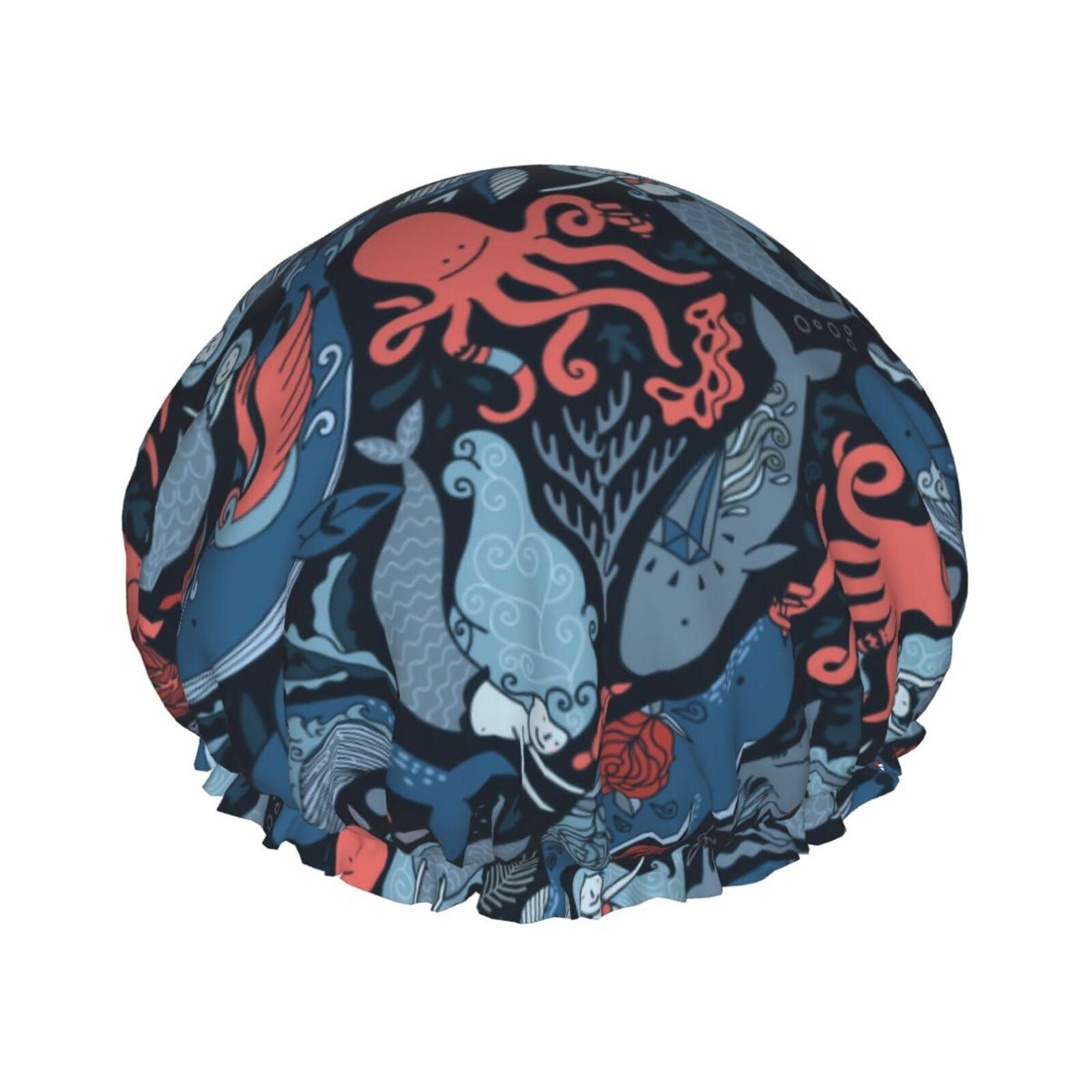 Octopus Sharks Whales Large Shower Cap For Women Men Reusable Shower Caps Waterproof Shower Cap For Braids & Long Hair shower bonnet with PEVA lined&Elastic Band Fashion showercap
