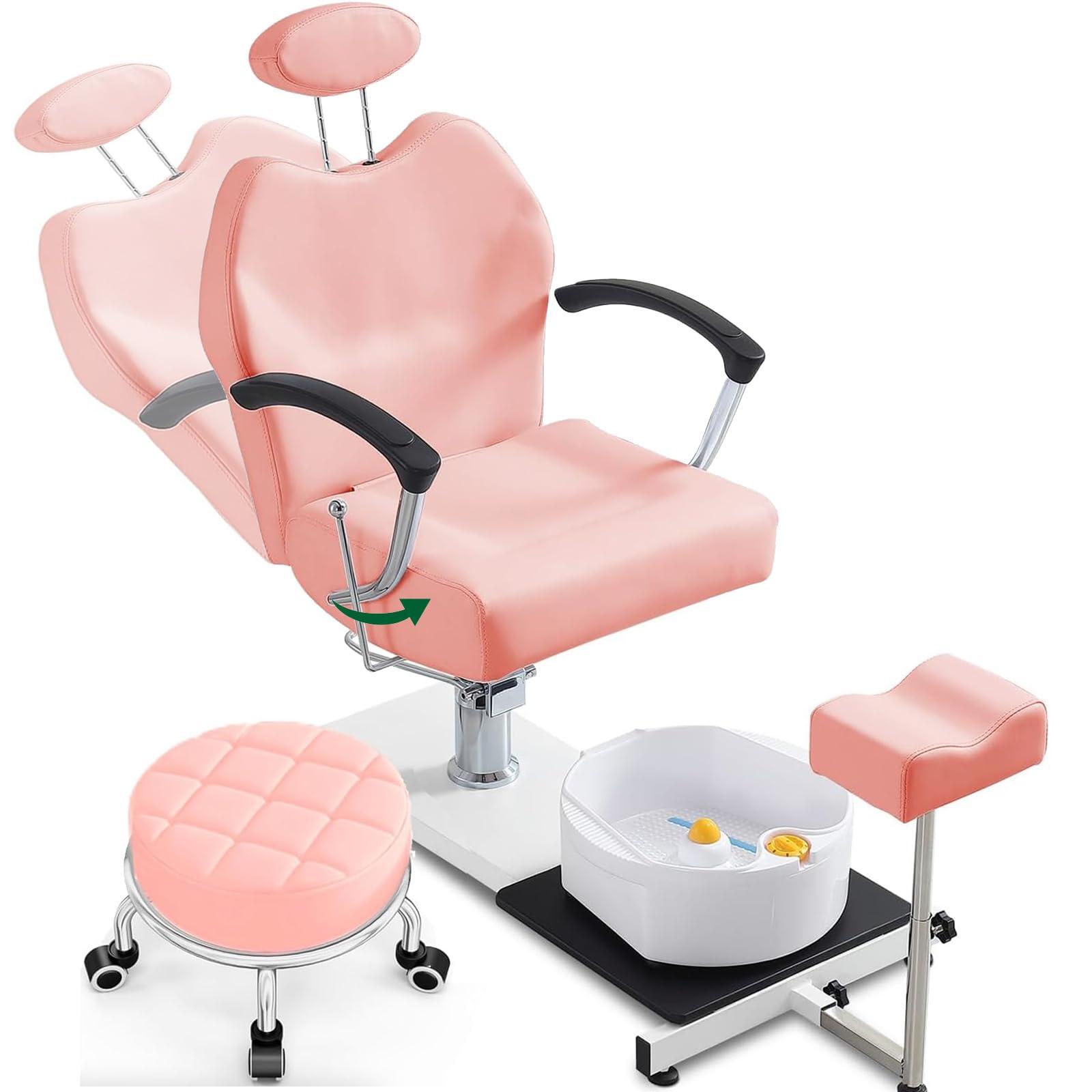 - Reclining Backrest & Adjustable Headrest - Reclining pedicure station with foot rest and foot basin, which s back can recline from 90 to 140. Soft leather and comfy foam, when you are sitting and reclining on the portable pedicure spa chair, you will have a relax foot spa experience. Besides, the headrest is also adjustable, making this pedicure station set suitable for people of all heights.
