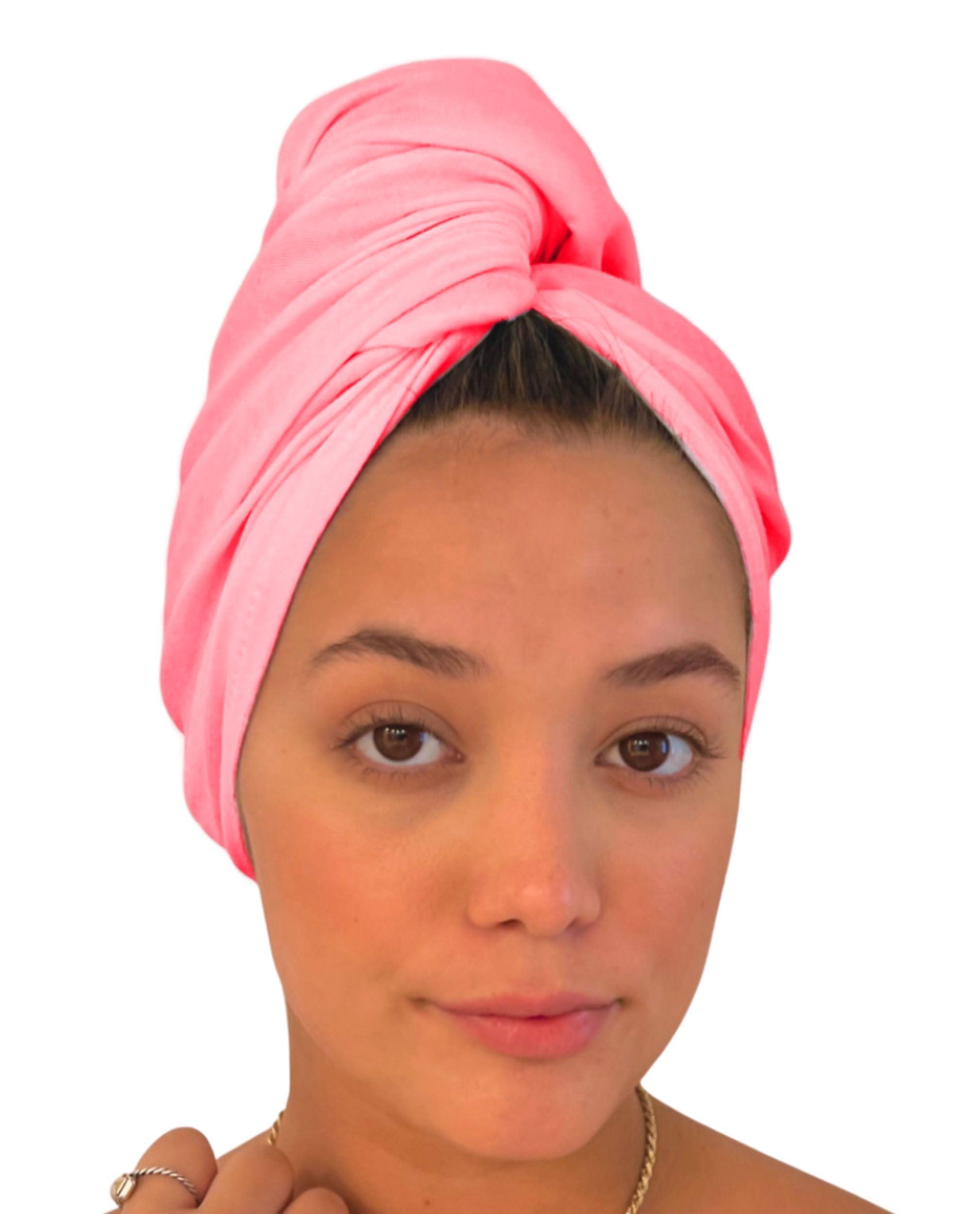 - 100% Cotton with MoistureLock Jersey Knit: our t-shirt hair towel fabric has no synthetic microfiber or microfiber blends which can cause friction and lead to frizz. Our pure cotton hair towels help to prevent damage, breakage, frizz, and tangles. Cotton means it will only get softer and more absorbent over time.