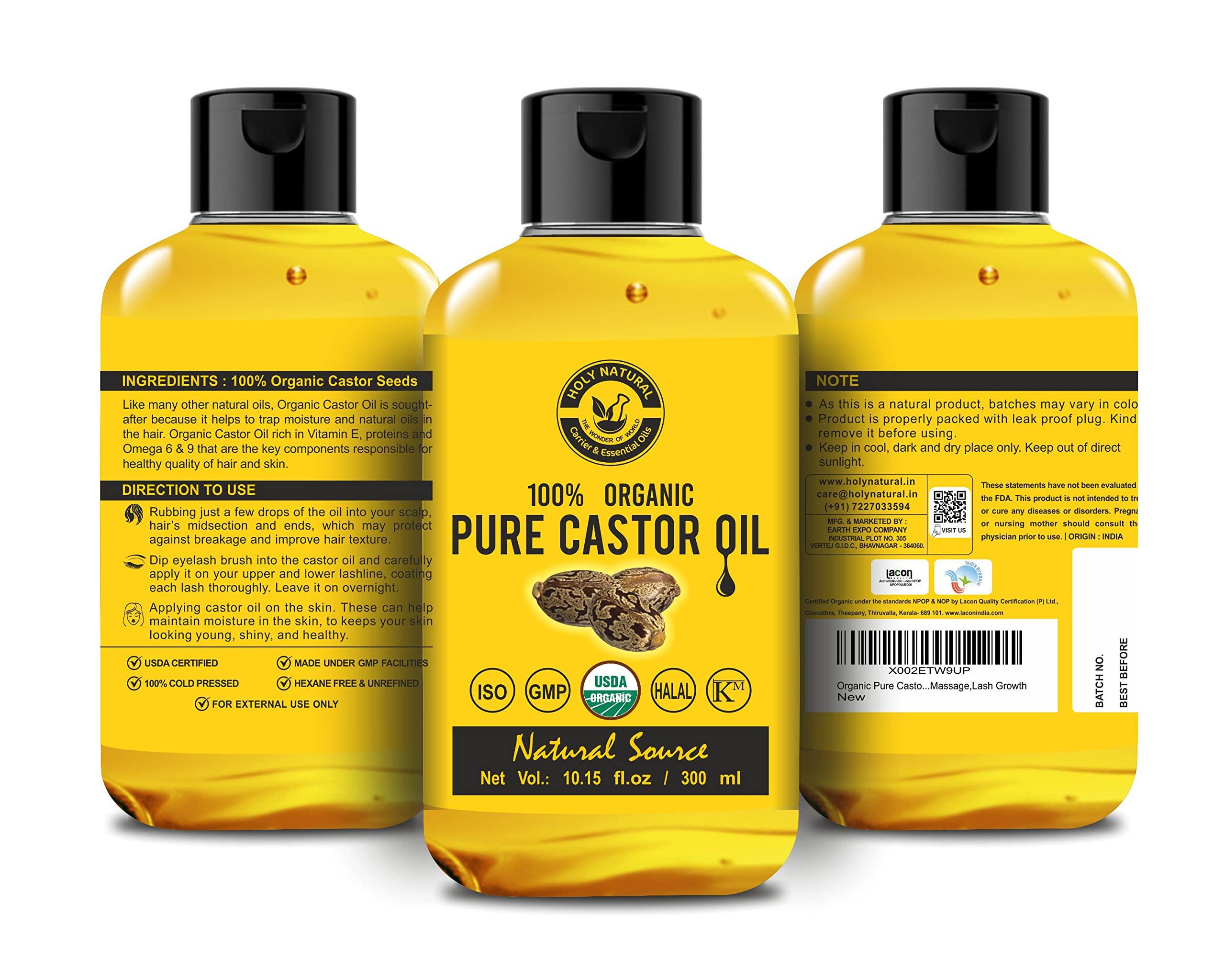 - Holy Naturals Organic Pure Castor Oil rich in Vitamin E, proteins and Omega 6 & 9 that are the key components responsible for healthy quality of hair and skin.