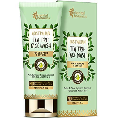 Oriental Botanics Australian Tea Tree Anti Acne Face Wash gently eliminates all traces of grime and grease and refreshes the skin. Packed with the goodness of pure Australian tea tree oil, this Face Wash is created for everyday skin freshness. It is highly effective in removing the deep-seated dirt and product residues and enhances the clarity of the skin. The mild exfoliating agent in the Face Wash gently sloughs off the dead skin and brings out the natural radiance of your skin. This Face Wash does not contain Mineral Oils, SLS/SLES, Silicones, Parabens, and Phthalates.