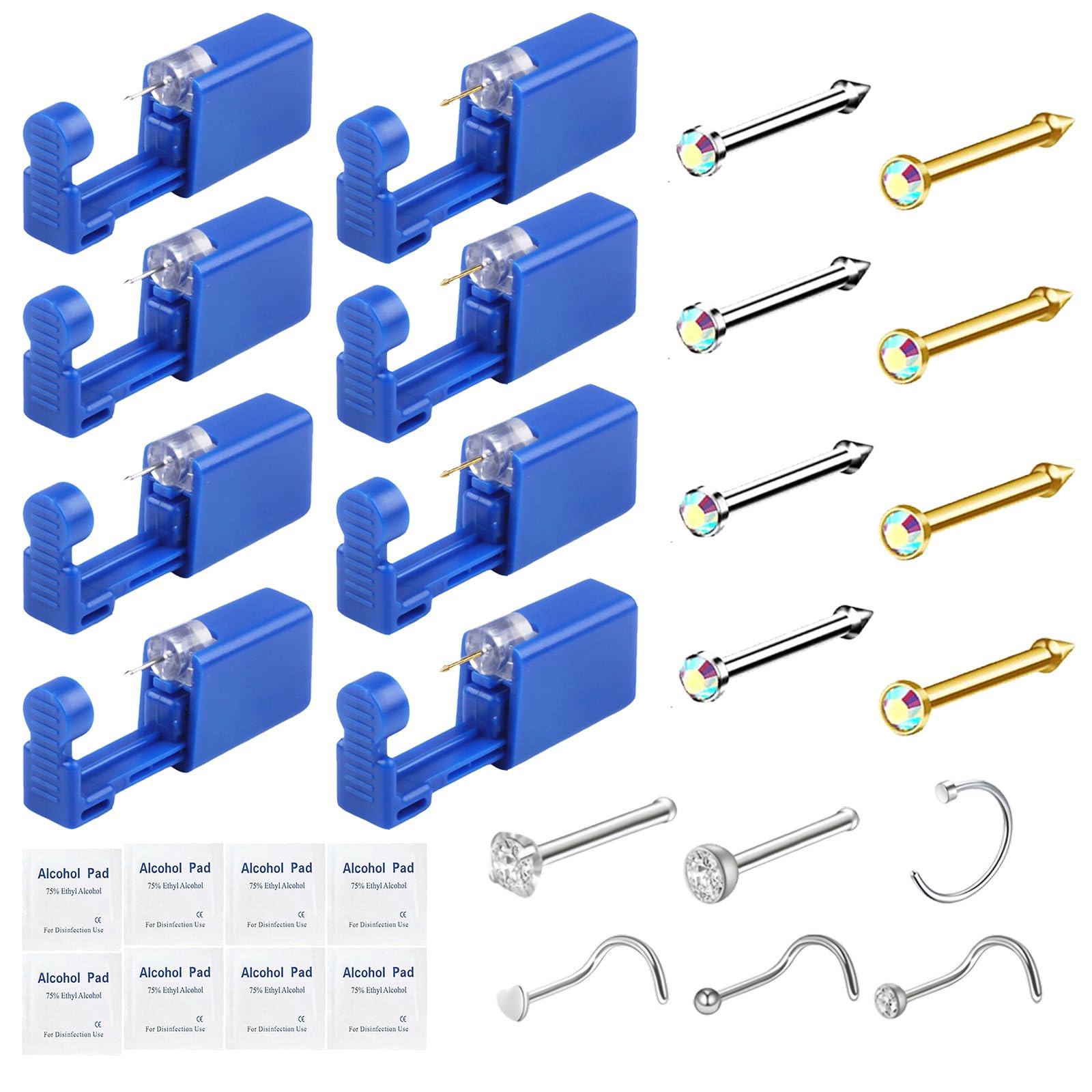 - 1.Nose Piercing Kit - 8Pcs Nose Piercing Gun, 8Pcs Built-In Nose Stud , 8Pcs Clean Pads And 6Pcs Beautiful Nose Rings Are Included In A Set. The Piercing Kit Are Made Of High Quality Materials And Be Packaged Individually. Suitable For You And Your Family To Use.