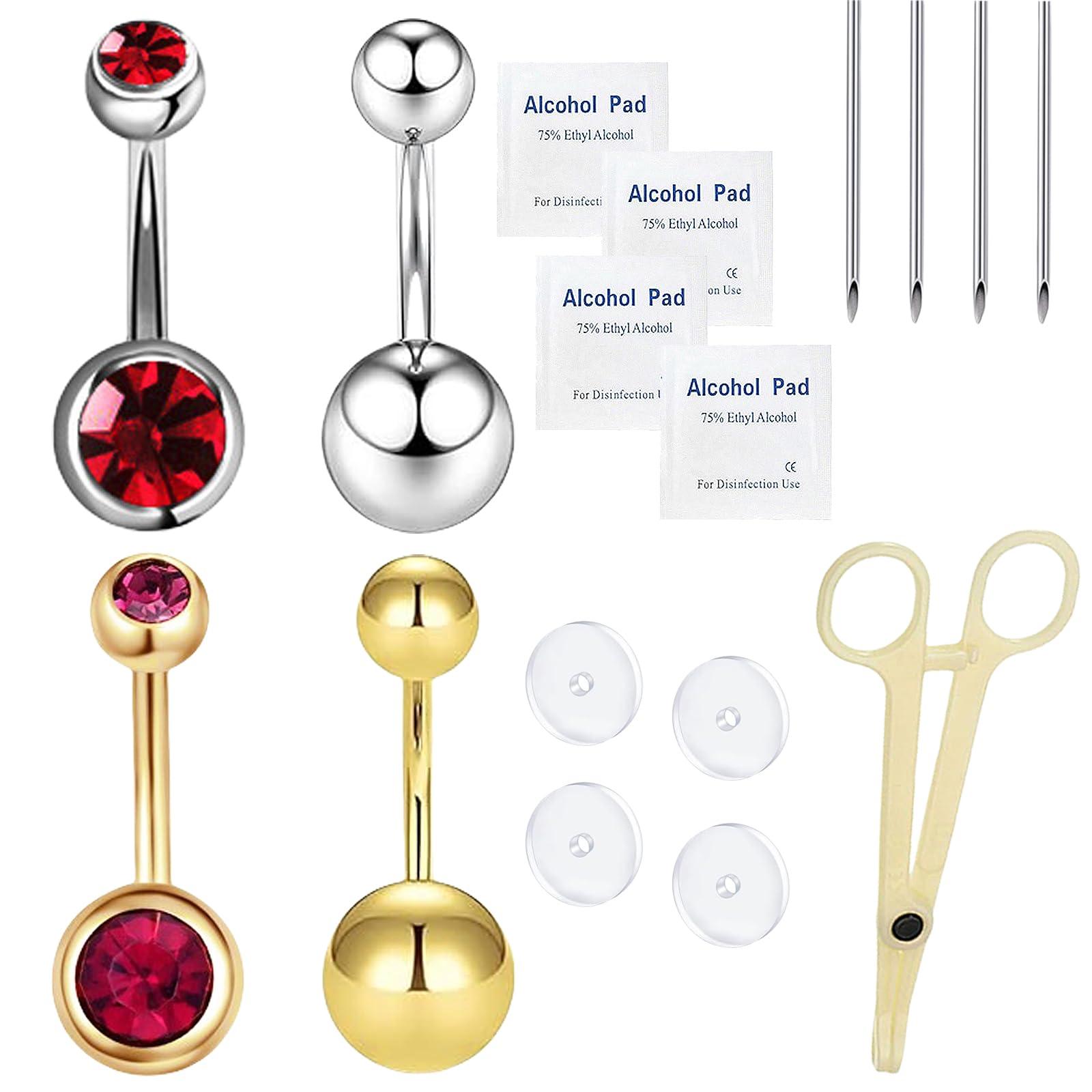 orilace orilace Belly Button Piercing Kit, 12g Piercing Needle Kit Stainless Steel Belly Button Rings Piercing Clamp At Home Piercing Tool Navel Piercing Kit (G+S-Red)