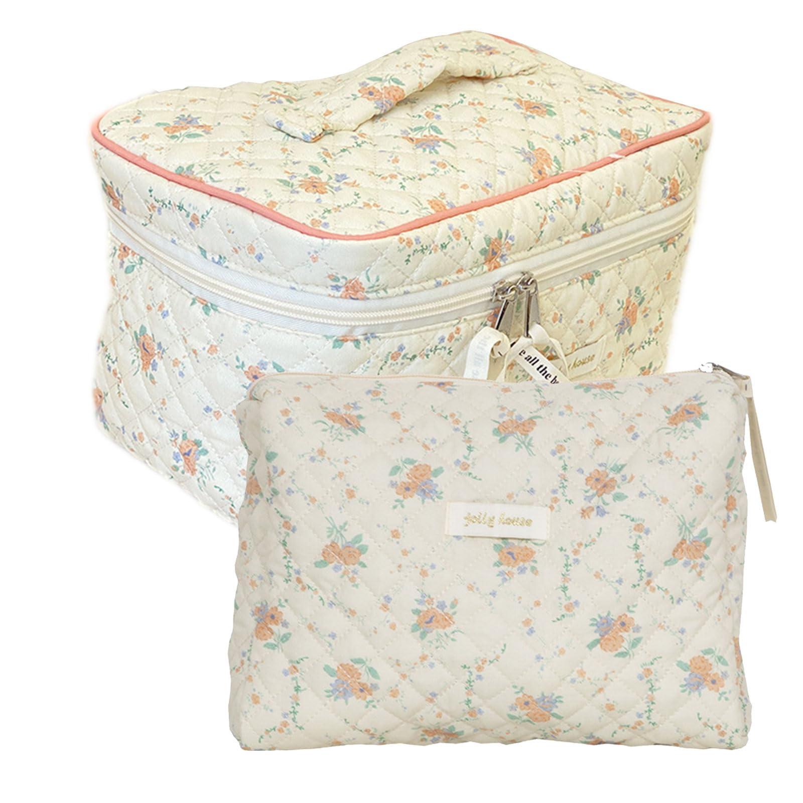 Korean Cute Toiletry Bag Travel Organizer Portable Zipper Make Up Purse Quilted Clutch Handbag Large-capacity Floral Print for Ladies Girl