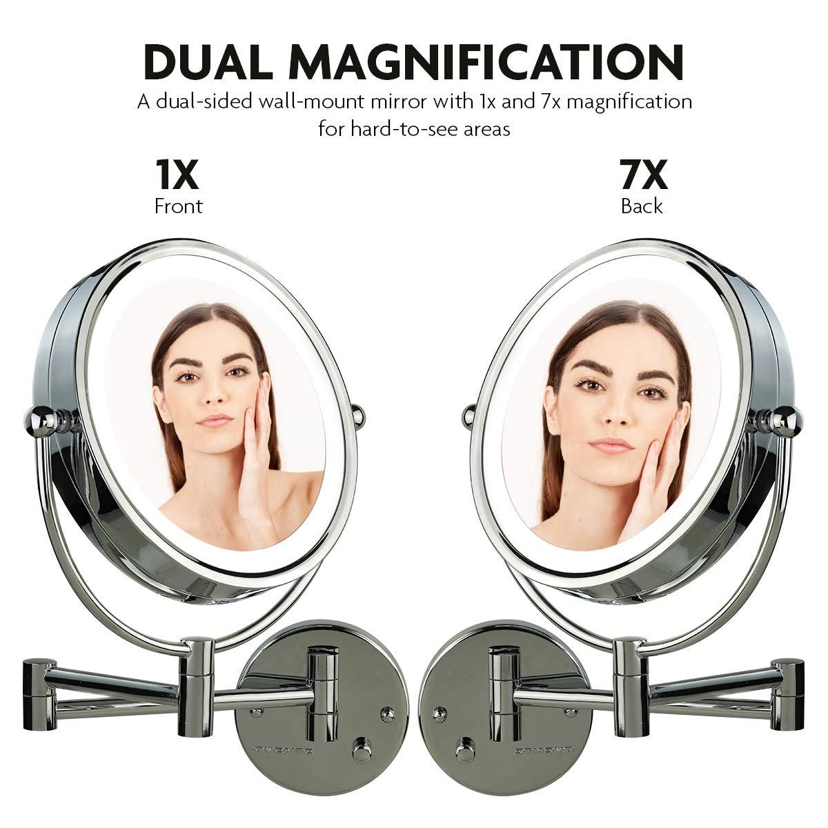 - EXTENDABLE ARM & EASY TO USE The extendable and folding arm feature allows you to easily adjust the mirror to your desired angle, extending up to 14.5 inches from the wall and folding neatly against it when not in use, making it an ideal solution for small spaces. With secure hardwired installation, it provides a stable and permanent fixture, eliminating the need for constant readjustment. (Note: For your safety, we recommend having a professional install it for you.)