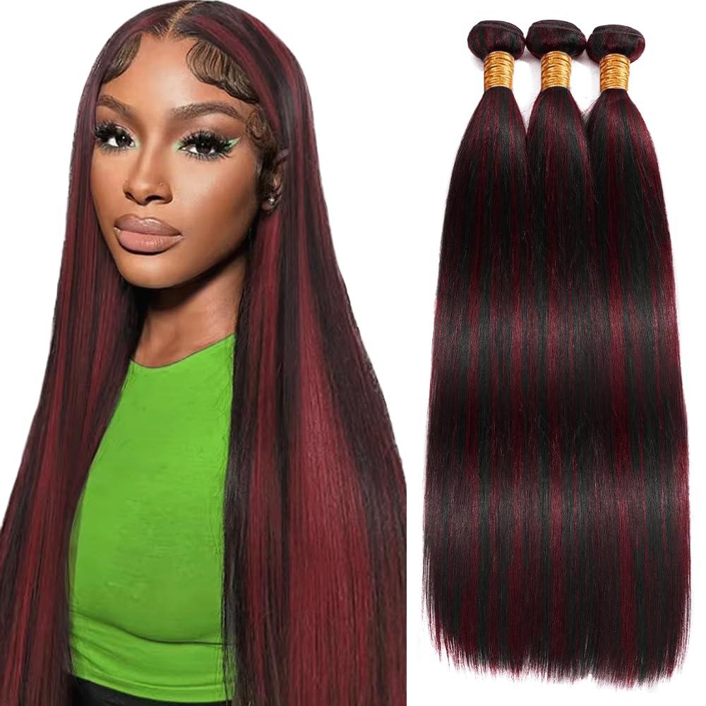- P1B99J Straight Bundles Hair Color: P1B99J Bundles,Highlight Burgundy Straight Human Hair Bundles,Beautiful and Fashion