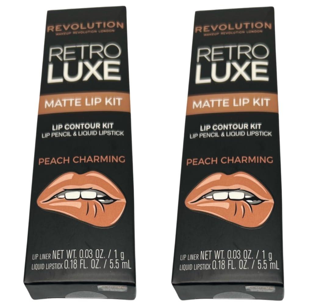 Pack of 2 Revolution Retro Luxe Matte Lip Kit, Peach Charming Our retro luxury matte lip kits include a liquid matte lipstick and the matching lip liner. This ensures impressive lips. First apply the lip liner, then apply the Intense Matte Finish Liquid Lacquer to achieve an intense and long-lasting result.