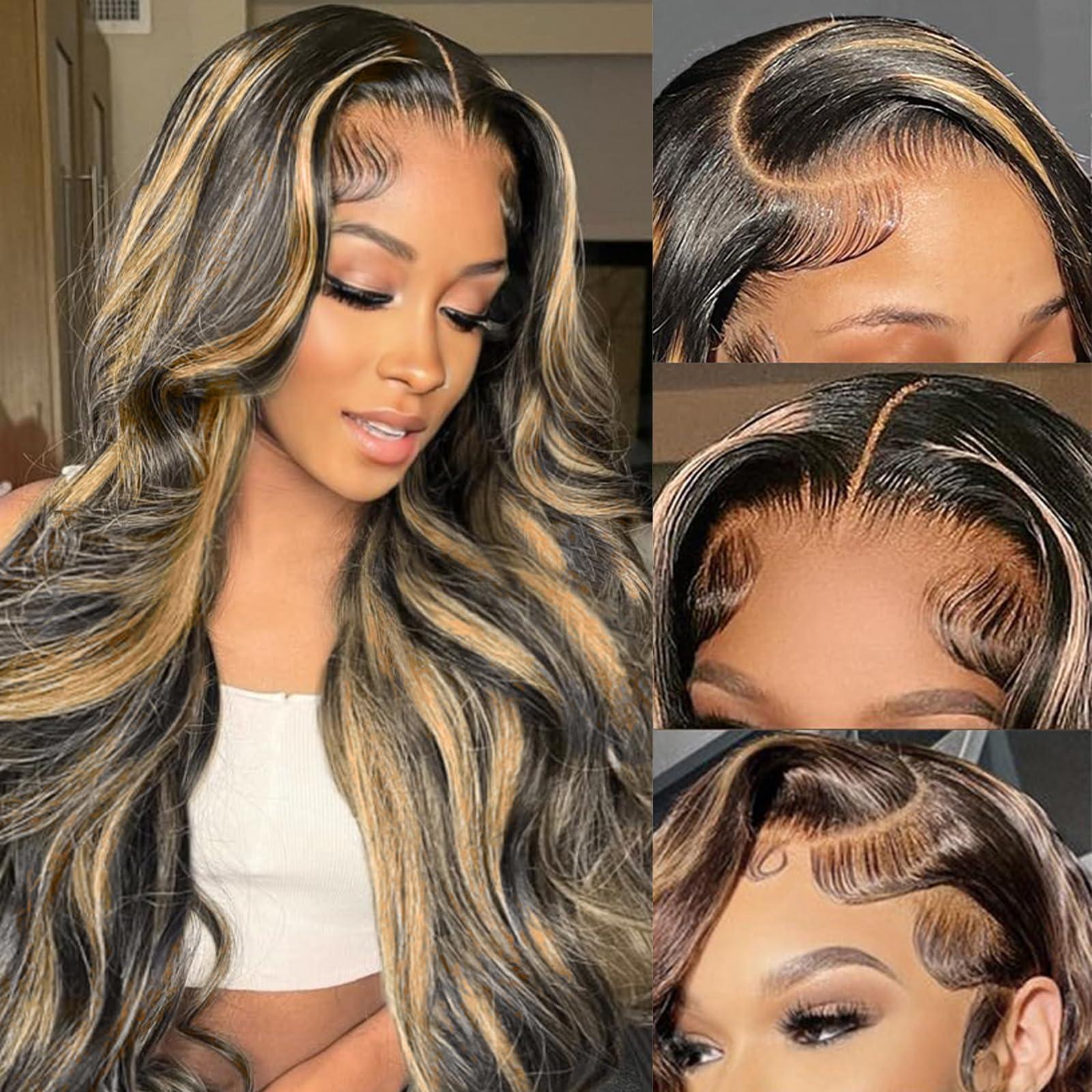 - 1B/27 Colored Lace Frontal Wig Quality:The Perfect Blonde of Gold and Black to Suit All Skin Tones,The Highlight Position Will Maintain the Perfect Line No Matter How You Separate,and the Highlight Position Can be Worn in The Middle or Side.Can be Side Part,Middle Part,High Ponytail& Bun,Styled as You Like.