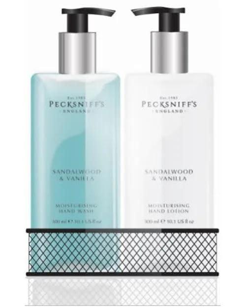Indulge in the luxurious blend of rich sandalwood and creamy vanilla with Pecksniff's Hand Soap and Lotion Set. Presented in an elegant black mesh caddy, this set not only enhances your home dcor but also transforms your hand care routine into a pampering experience. Each formula is crafted with high-quality ingredients to cleanse, moisturize, and leave your skin feeling irresistibly soft. You'll love the sophisticated scent that lingers, providing a subtle reminder of your exquisite taste.