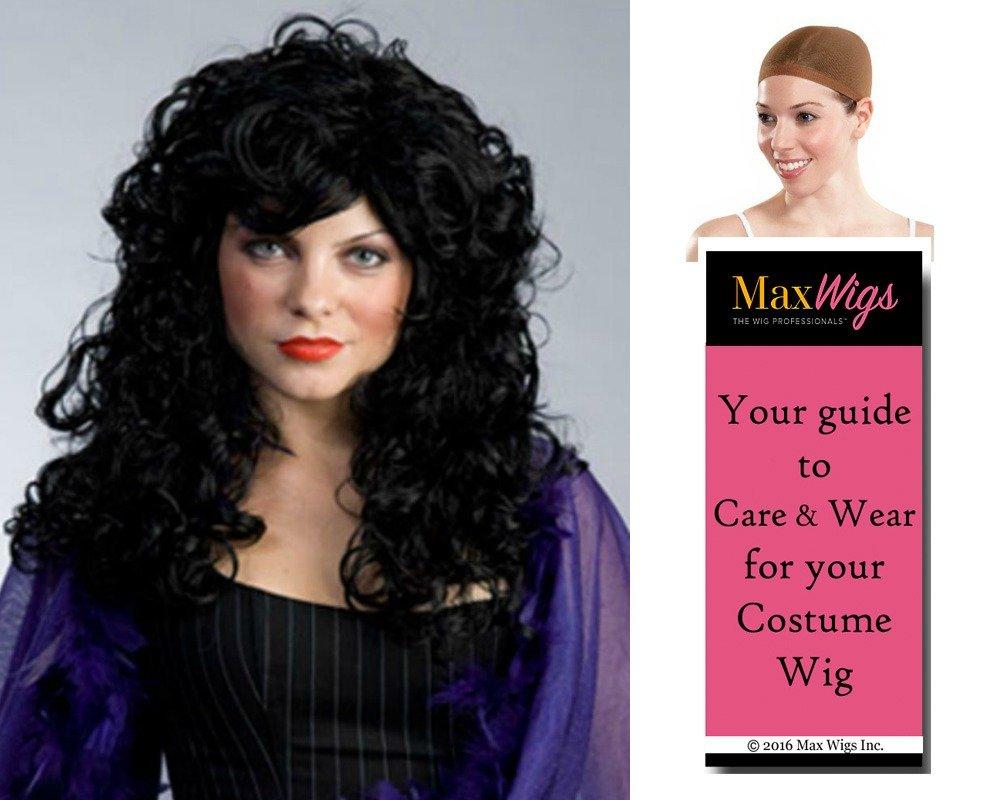 Maxwigs Peg Bundy color BLACK - Enigma Wigs Saloon Gal Sassy Long Curly Womens Bundle with Cap, MaxWigs Costume Wig Care Guide