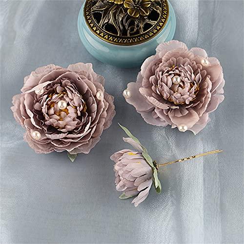 Peony Flower Hair Clip Hanfu Hairpin Bridesmaid Pin up Flower Brooch Party Wedding Decor (Light Gray-3Pcs)