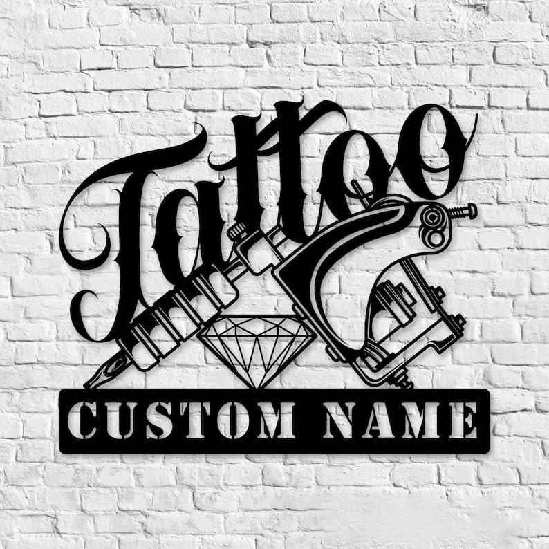 - Personalized Tattoo Artist Wall Art Business Custom Metal Sign 8x8 inches Black Power Coated Home Tattoo Shop Decor Birthday Christmas Gift