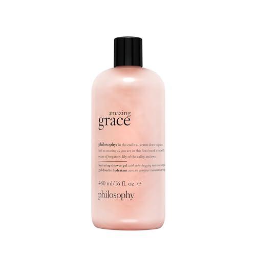 - Transport yourself to a moment of self-care with the ultra-creamy, iconic philosophy shower gel, upgraded with a skin-hugging moisture complex for intense hydration that wont be rinsed off yet doesnt leave the feel of a film or residue. the moisture-barrier-respecting formula efficiently cleanses, soothes, and comforts dry skin, while a floral scent of bergamot, lily of the valley and musk leaves you feeling amazing.