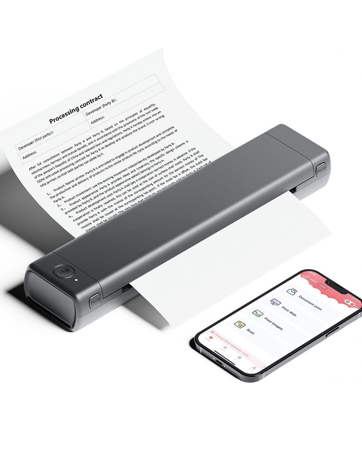 - Compact Design - Phomemo M08F-A4 Portable Printer is compact and portable, 80% smaller in size and weight than traditional printers, effortless to hold with one hand. The thermal printer is suitable for any scenarios that require mobile printing in business/travel/car/office/school. For example, print invoices, exam documents, lists and contracts on site.