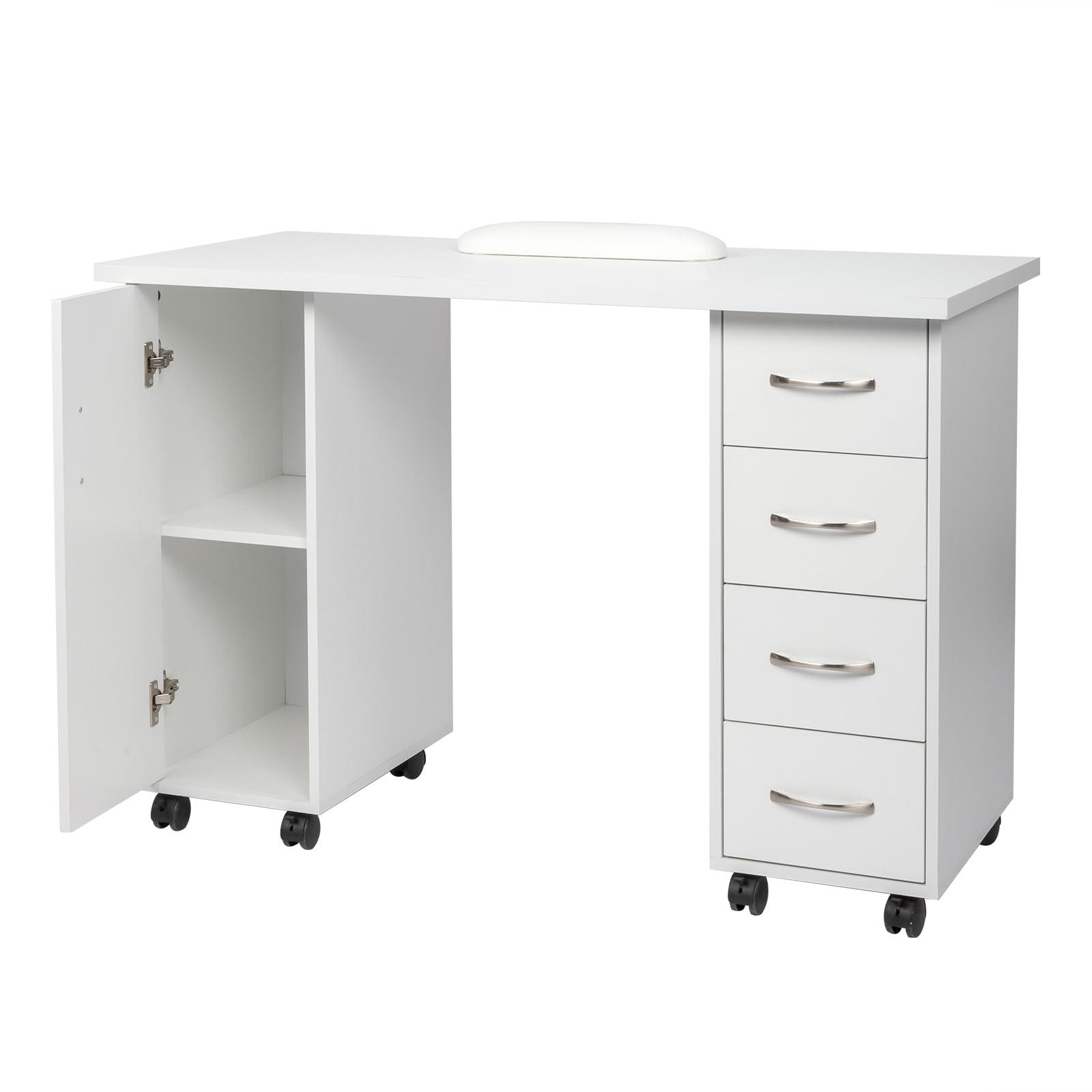 - The wooden manicure table is designed with 1 side cabinet with two compartments and 4 drawers, which provides you with space for storing your nail polishes or other nail tools.