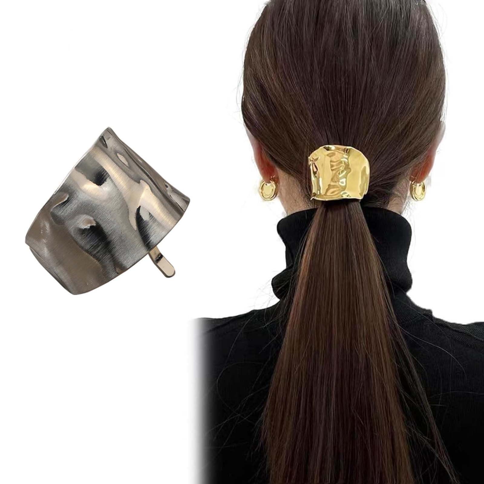 Ponytail Holder Hair Clips, Lava High Ponytail Buckle Hair Cuff, Metal Dress Up Hair Ring, Cuff Hair Tie,Gold Ponytail Cuff,Long Tail Clip with Hooks (Silver (1PC), Narrow side)