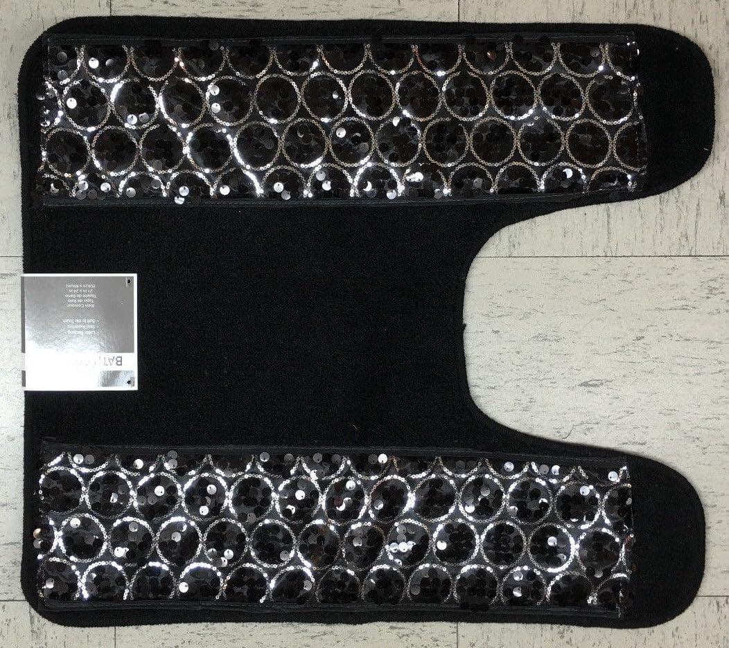 Popular Bath Sinatra Contour Rug with Black Sequins, Black
