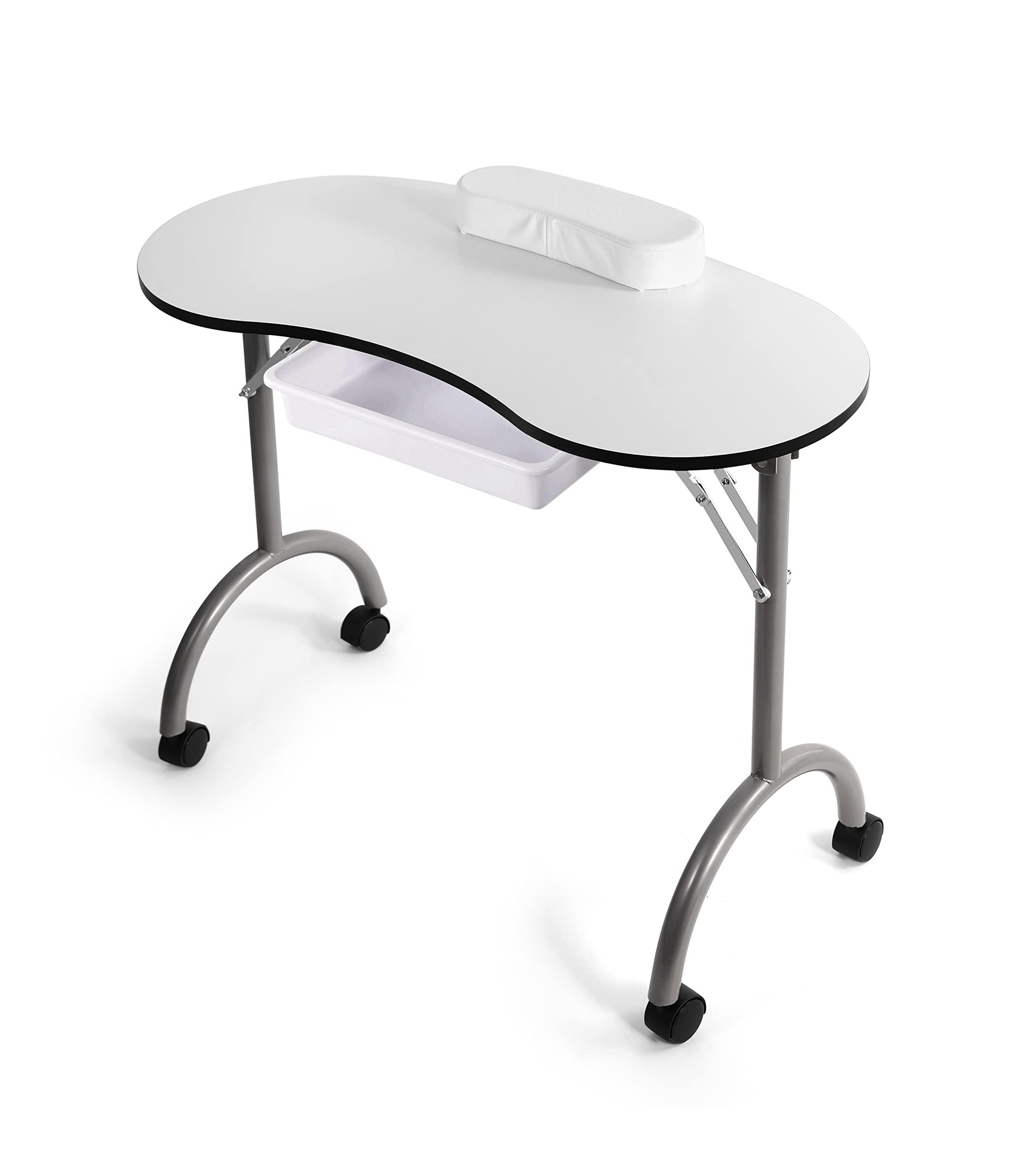 Nail Table with Rolling Wheels, Sponge Wrist Cushion, Large Storage Drawer