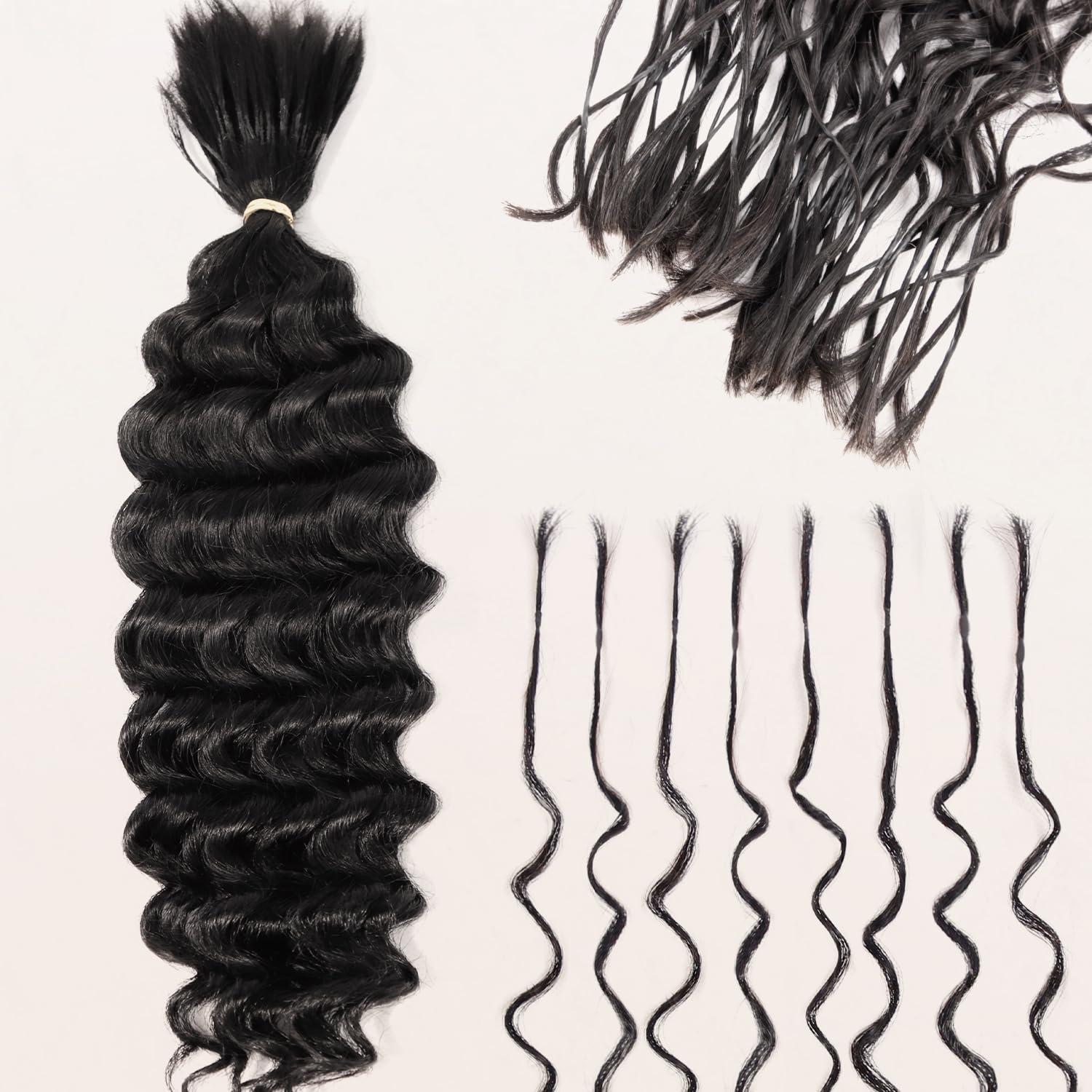 - Various Use Occasions: Pre-Divided Deep Wave Bulk Human Hair Is More Perfectly Braid Bohemian Braids, Knotless Braids, Box braids, Boho Locs Hairstyle. Additionally, Bulk Deep Wave Also Add Length and Volume to Your Natural Hair.